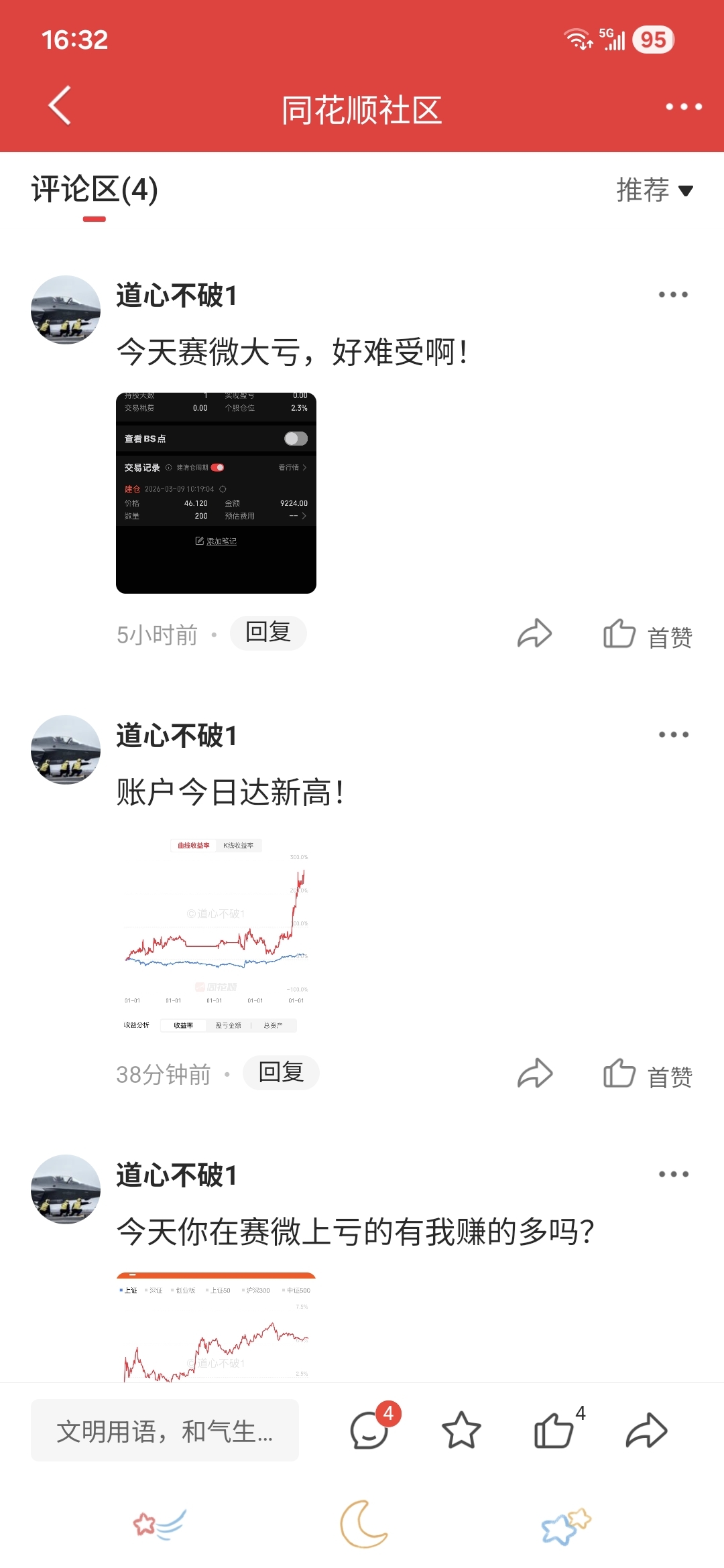 温馨提示: 1.根据《证券法》规定,禁止编造、传播虚假信息或者误导性信息,扰乱证券市场;2.用户在本社区发表的所有资料、言论等仅代表个人观点,与本网站立场无关,不对您构成任何投资建议。用户应基于自己的独立判断,自行决定证券投资并承担相应风险。《东方财富社区管理规定》