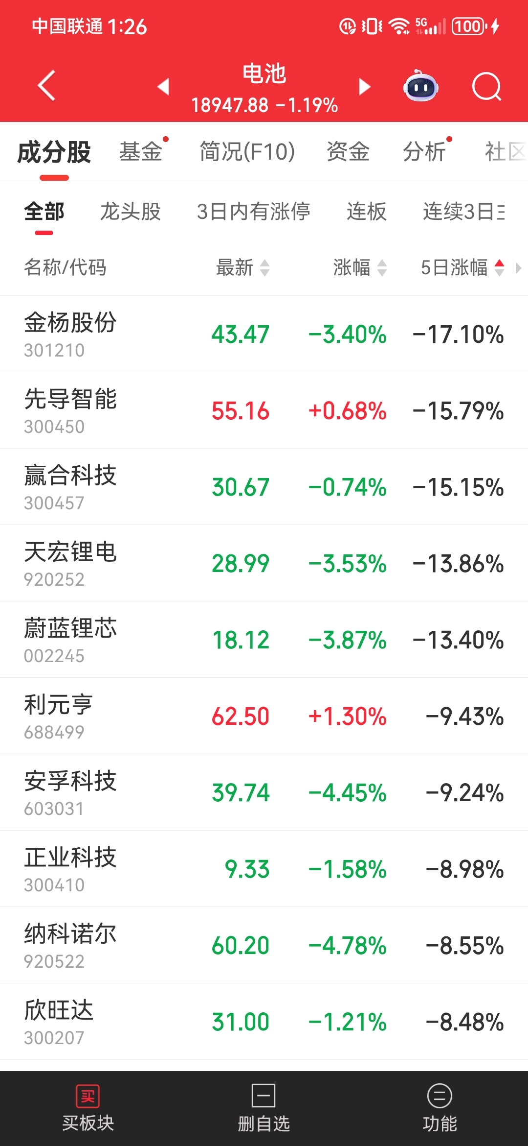 $赢合科技(SZ300457)$ 5日跌幅板块倒数第三名,的确好强