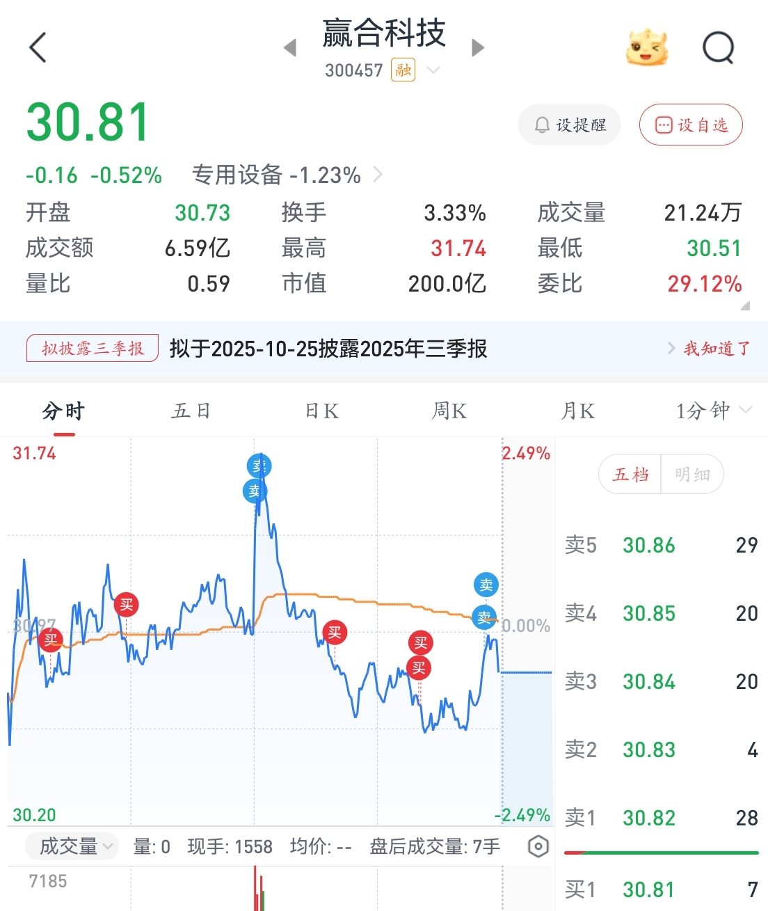 $赢合科技(SZ300457)$ ,怒赚0.01%, 200个大洋!真累!明天走人,不想玩了!