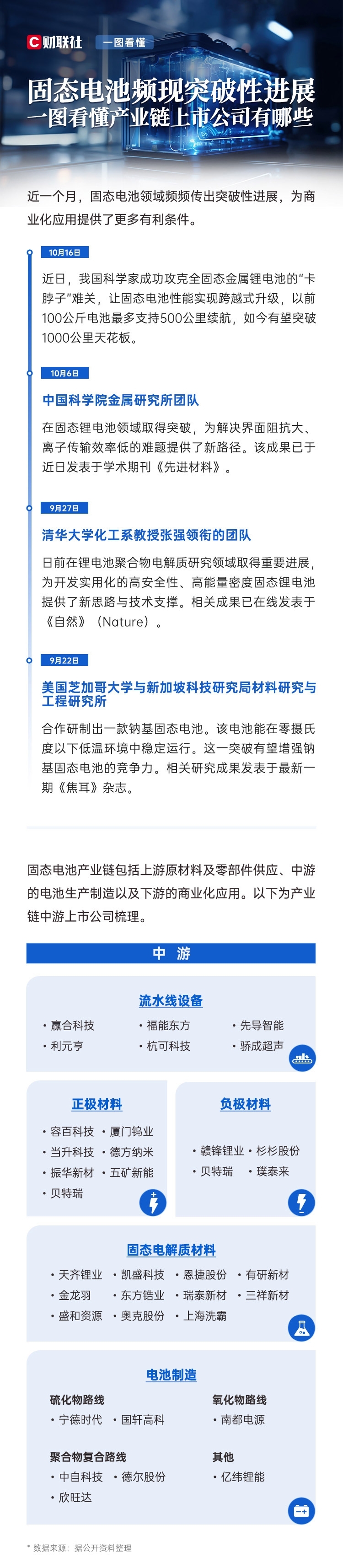 固态电池领域频现突破性进展!一图看懂产业链上市公司有哪些。