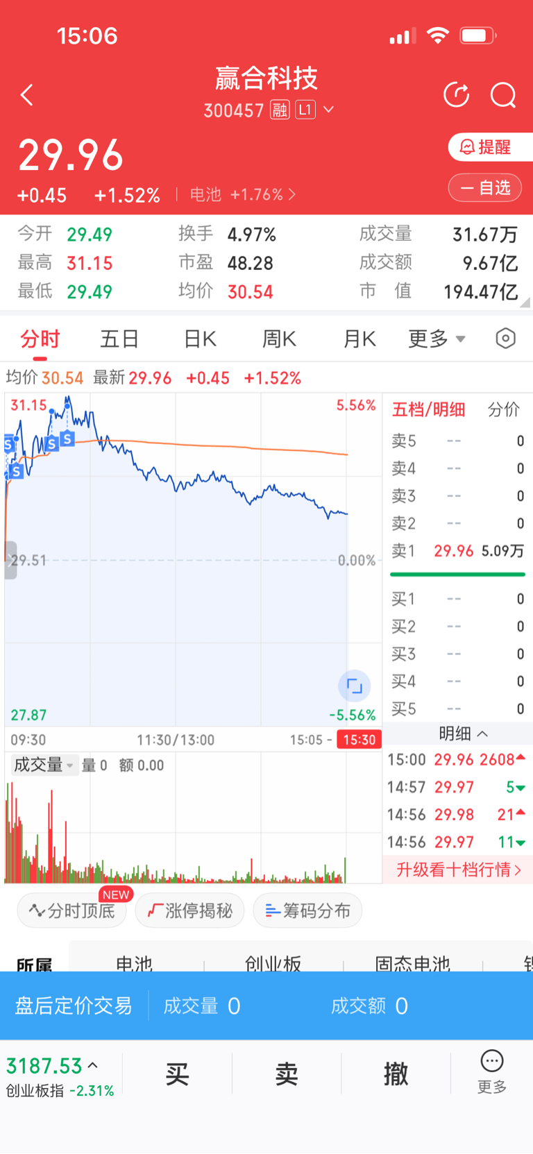 $赢合科技(SZ300457)$ 对你还是有所了解的,就知道你会一路跌到收盘