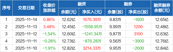 赢合科技:融资净买入1676.39万元,融资余额12.62亿元(11-14)