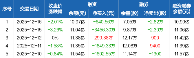 赢合科技:融资净偿还640.56万元,融资余额10.97亿元(12-16)