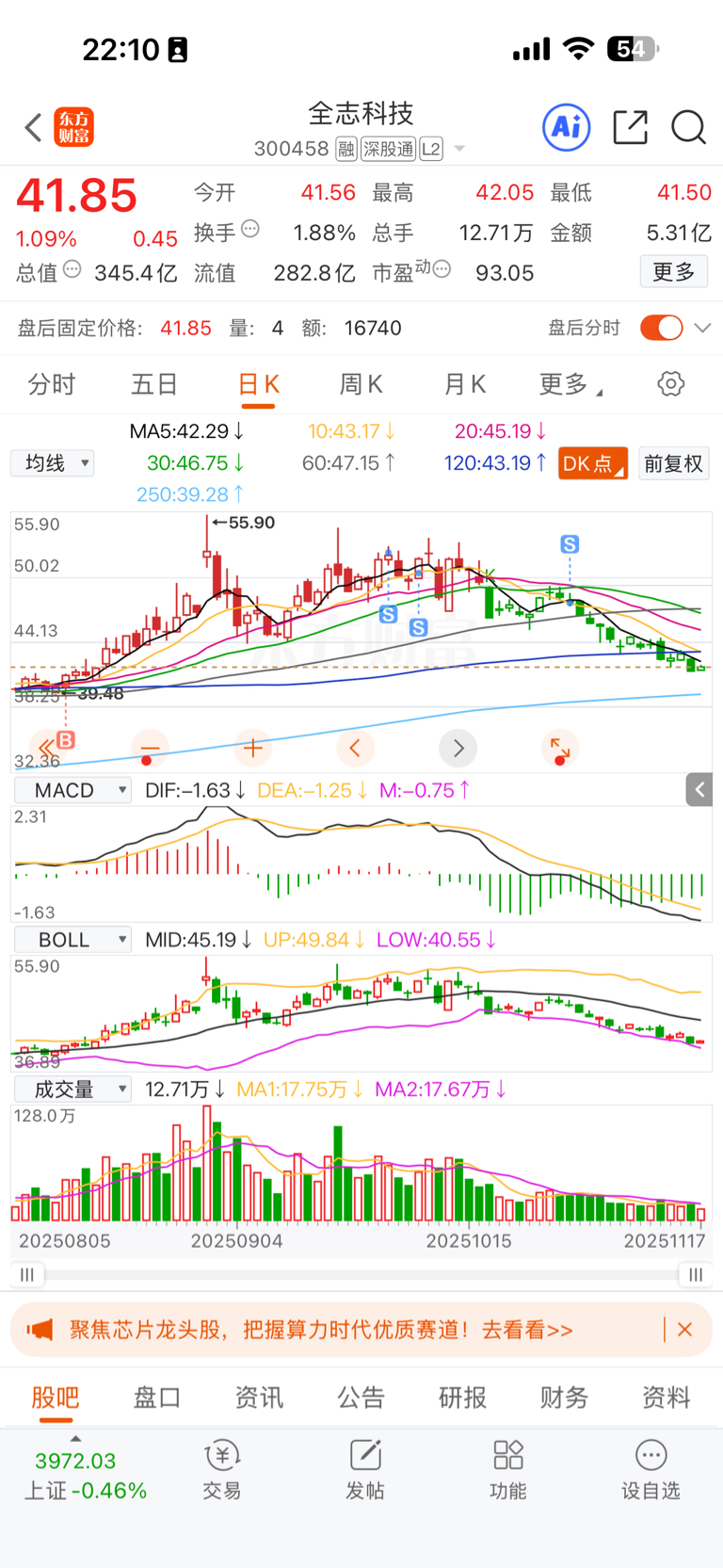 $全志科技(SZ300458)$ 还真不能死扛,还好我跑得快,虽然没卖在高点,认错要快,要不然前面赚的辛苦钱全亏完了!