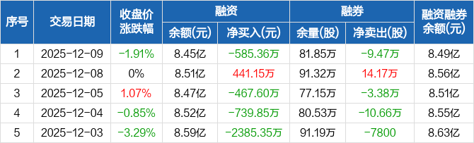 汤姆猫:融资净偿还585.36万元,融资余额8.45亿元(12-09)