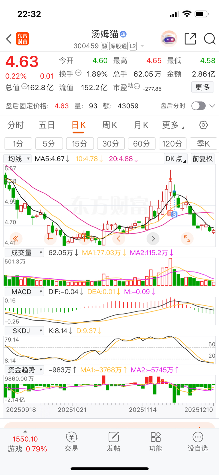 $汤姆猫(SZ300459)$ 跑得快,看到这种走势都得跑。