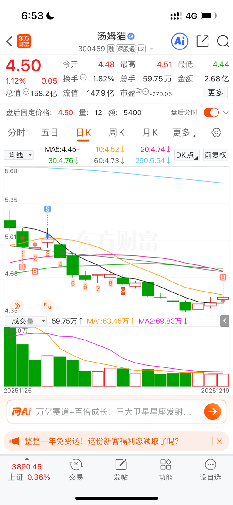 $汤姆猫(SZ300459)$ 小仓建仓,继续做