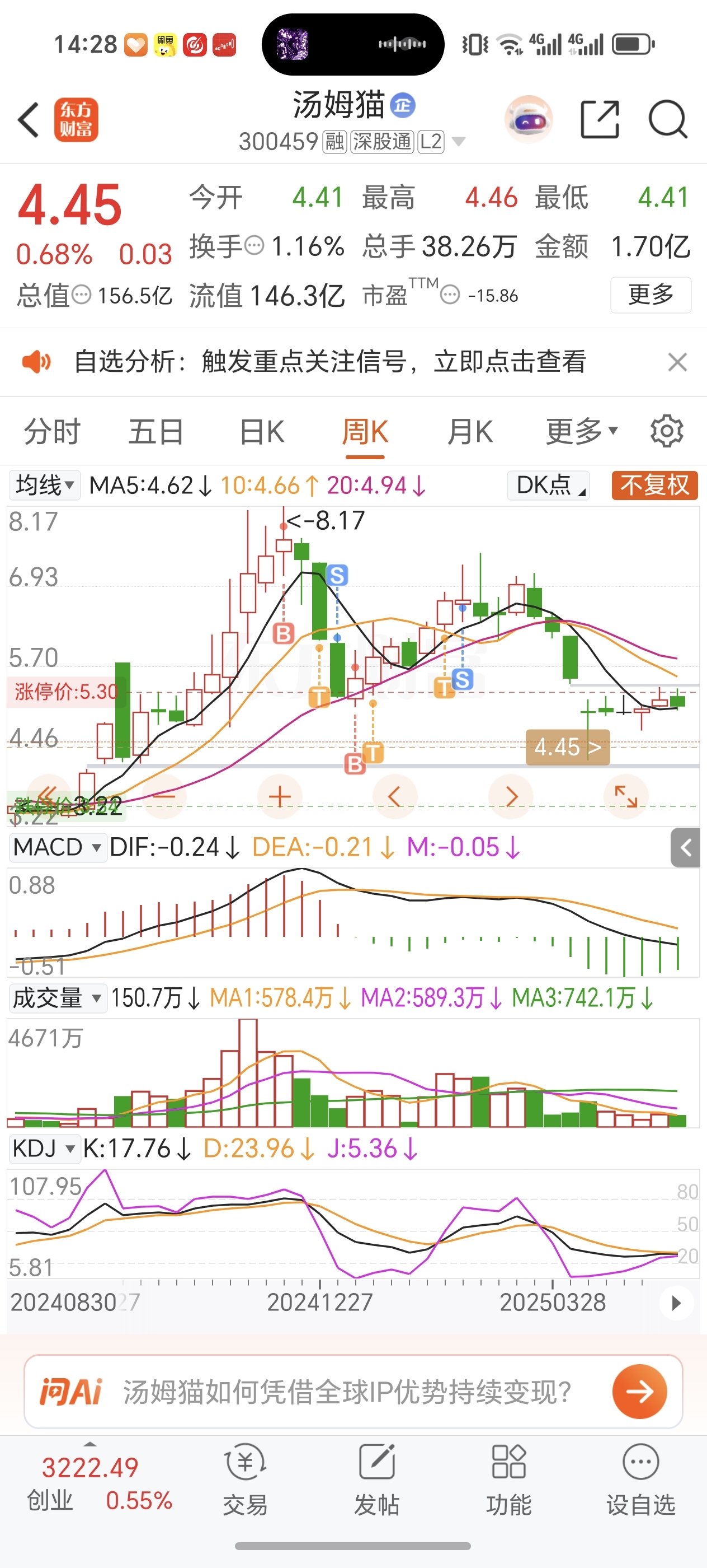 $汤姆猫(SZ300459)$ 一年不看,全在高点唉