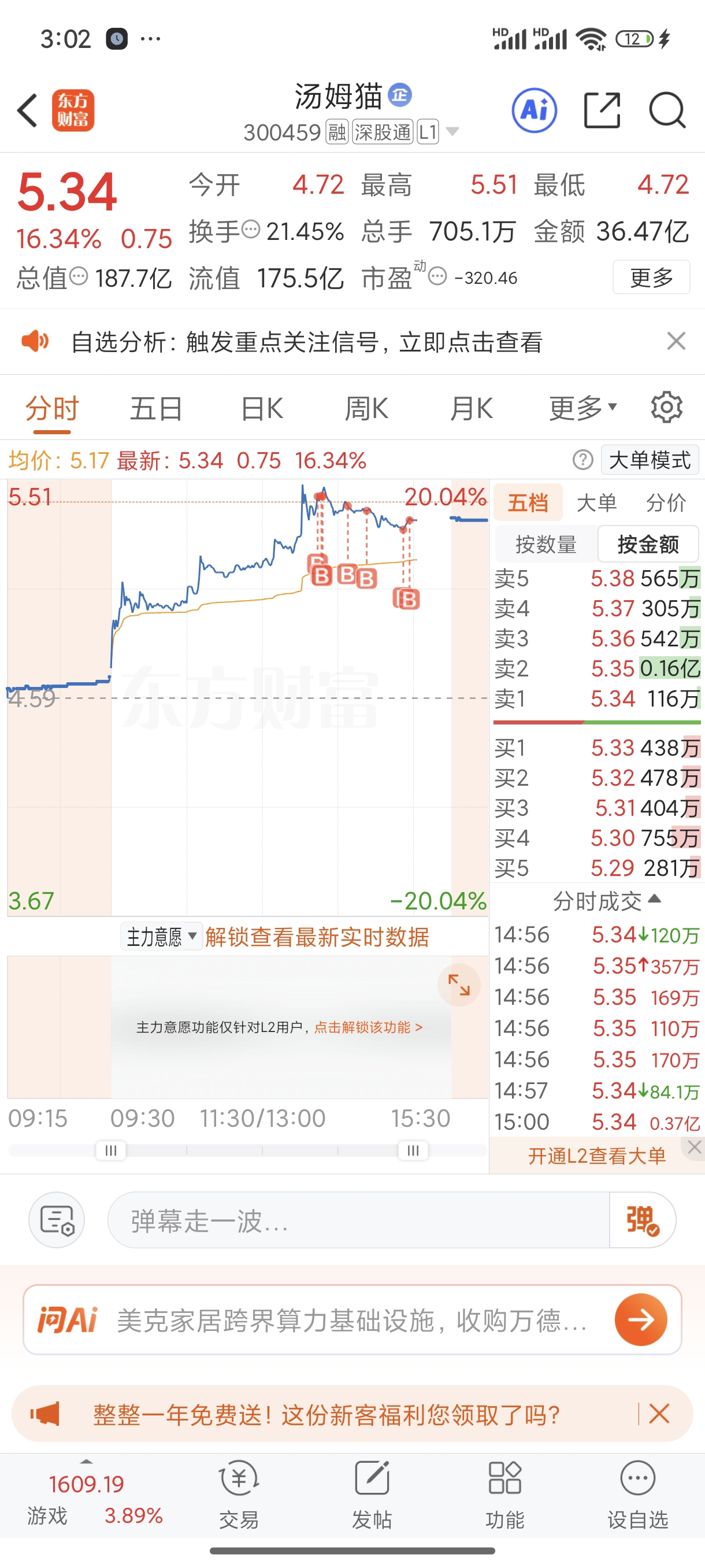 $汤姆猫(SZ300459)$ 我是韭菜我来接盘了