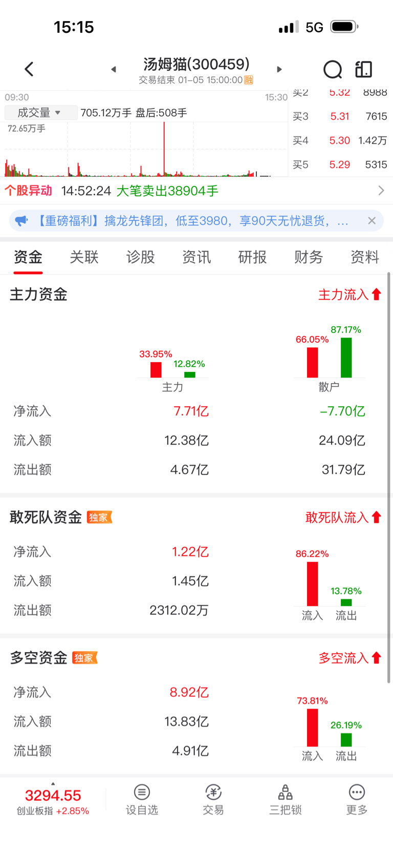 指南针上看的,流入8.9亿,大量散户出逃,我尾盘刚刚进场,不知明天凶吉
