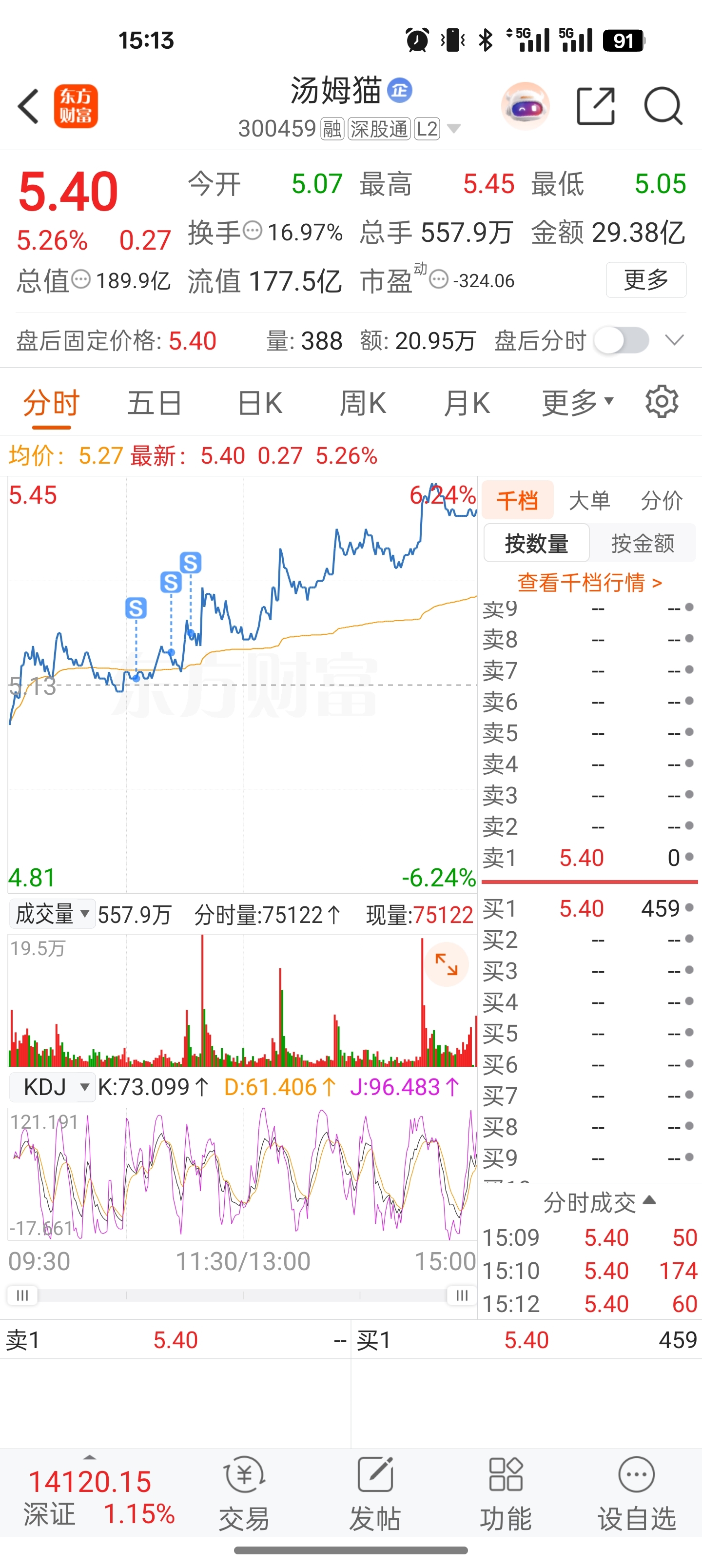 $汤姆猫(SZ300459)$ 没有早或迟的,你永远不知道那是高点哪是低点,落袋就是自己的钱,先撤,大家继续发财,一路涨停。