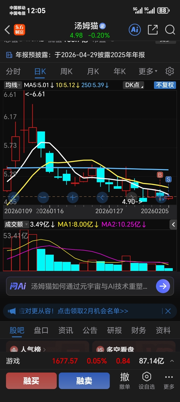 $汤姆猫(SZ300459)$ 偷袭一把,清仓了,70万股挣不到2万,哎。避险喔挣钱就行