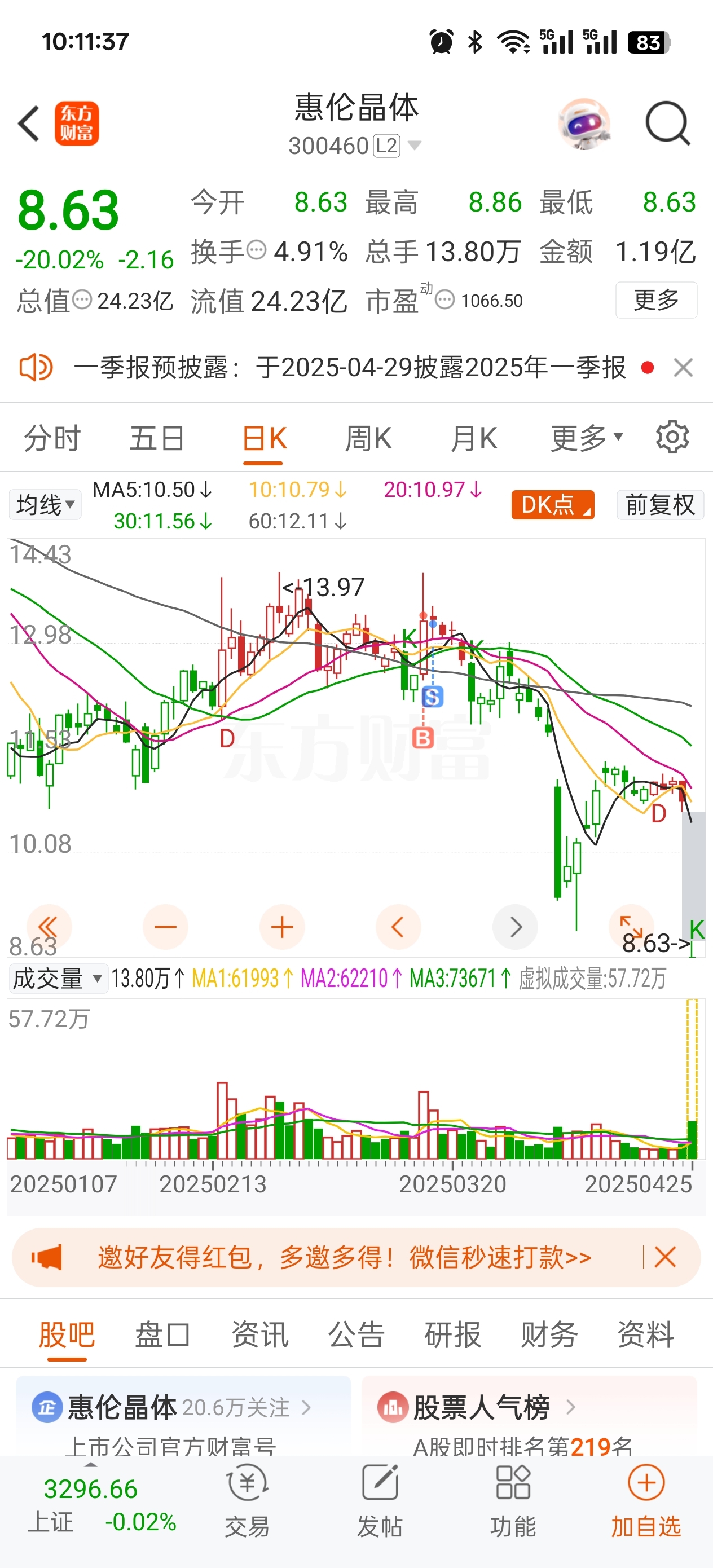 $惠伦晶体(SZ300460)$ 虽然没赚到,万幸