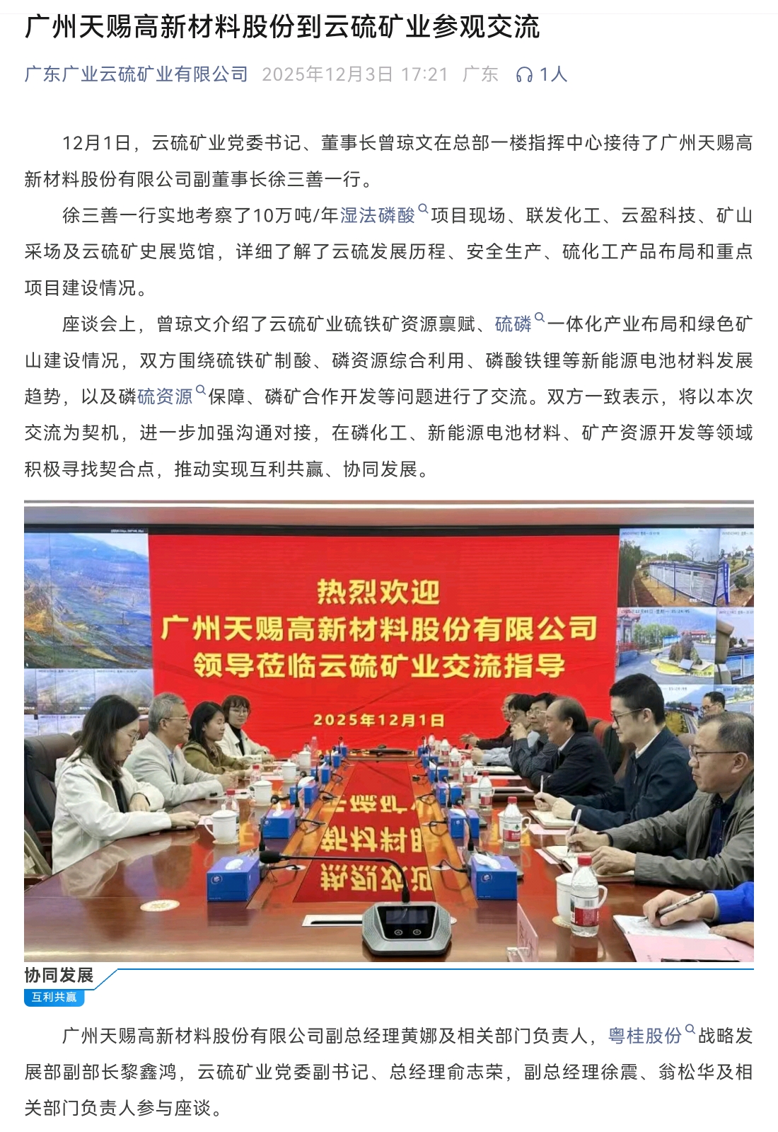 $ST惠伦(SZ300460)$ 三个跌停板比退市好,希望后面没有大雷了,不可以学普利制药小雷处理了又藏着大雷直接干退市了,股价从56干到0.56,董事长还是药学硕士。$天赐材料(SZ002709)$ $粤桂股份(SZ000833)$ 广州天赐高新材料股份天赐材料到粤桂股份子公司云硫矿业参观交流