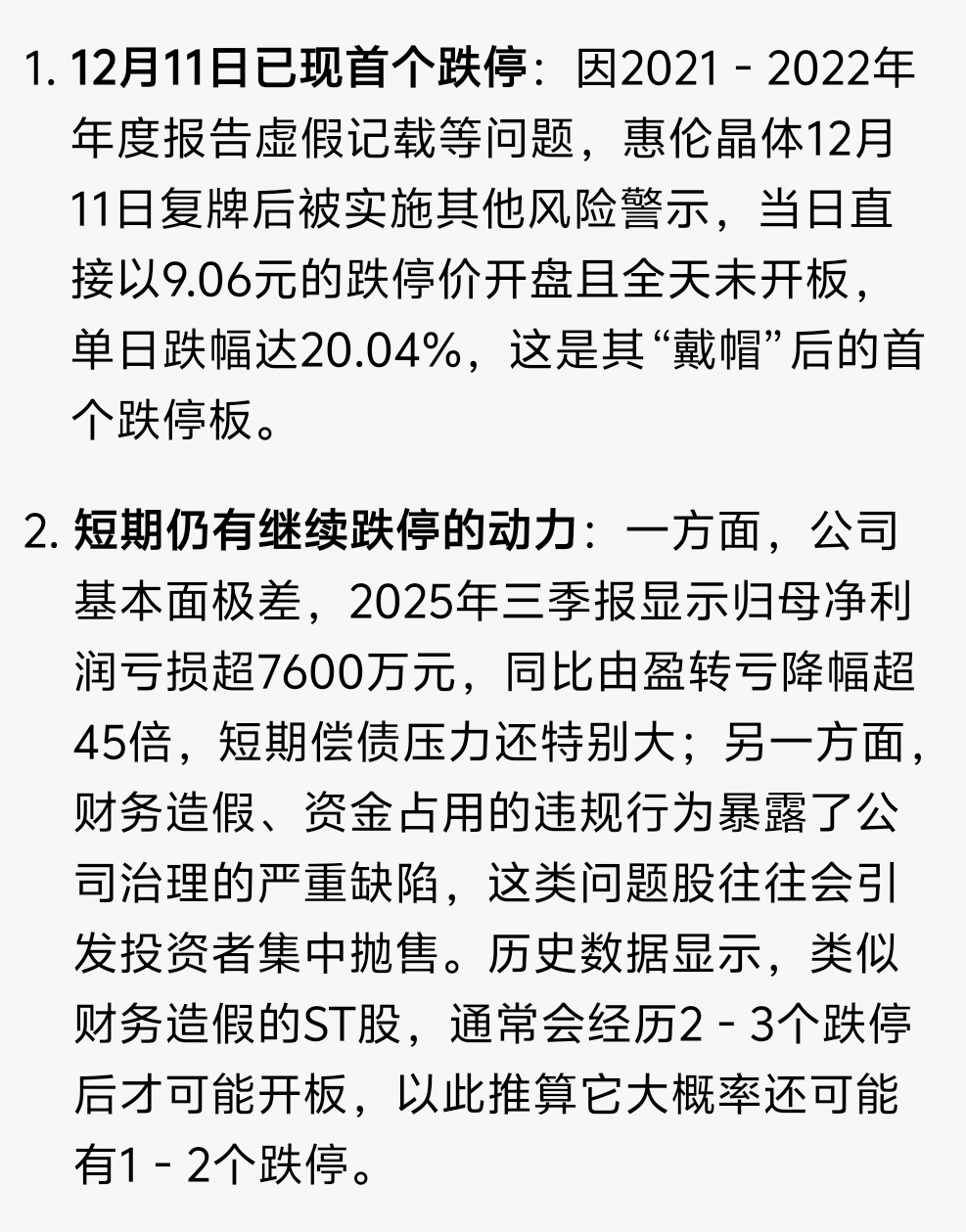 $ST惠伦(SZ300460)$ S丅惠伦:很有可能还有一到二跌停,除非出利好消息。