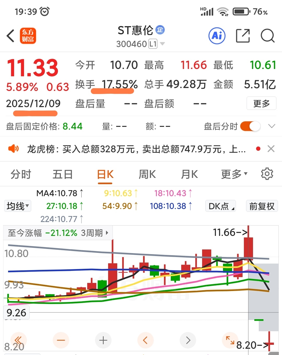 $ST惠伦(SZ300460)$ 近日在别处短线被套的朋友,到这里瞅一眼,是不是马上觉得自己的运气并没有多么不好啊,祈祷下一个交易日雨过天晴吧!
