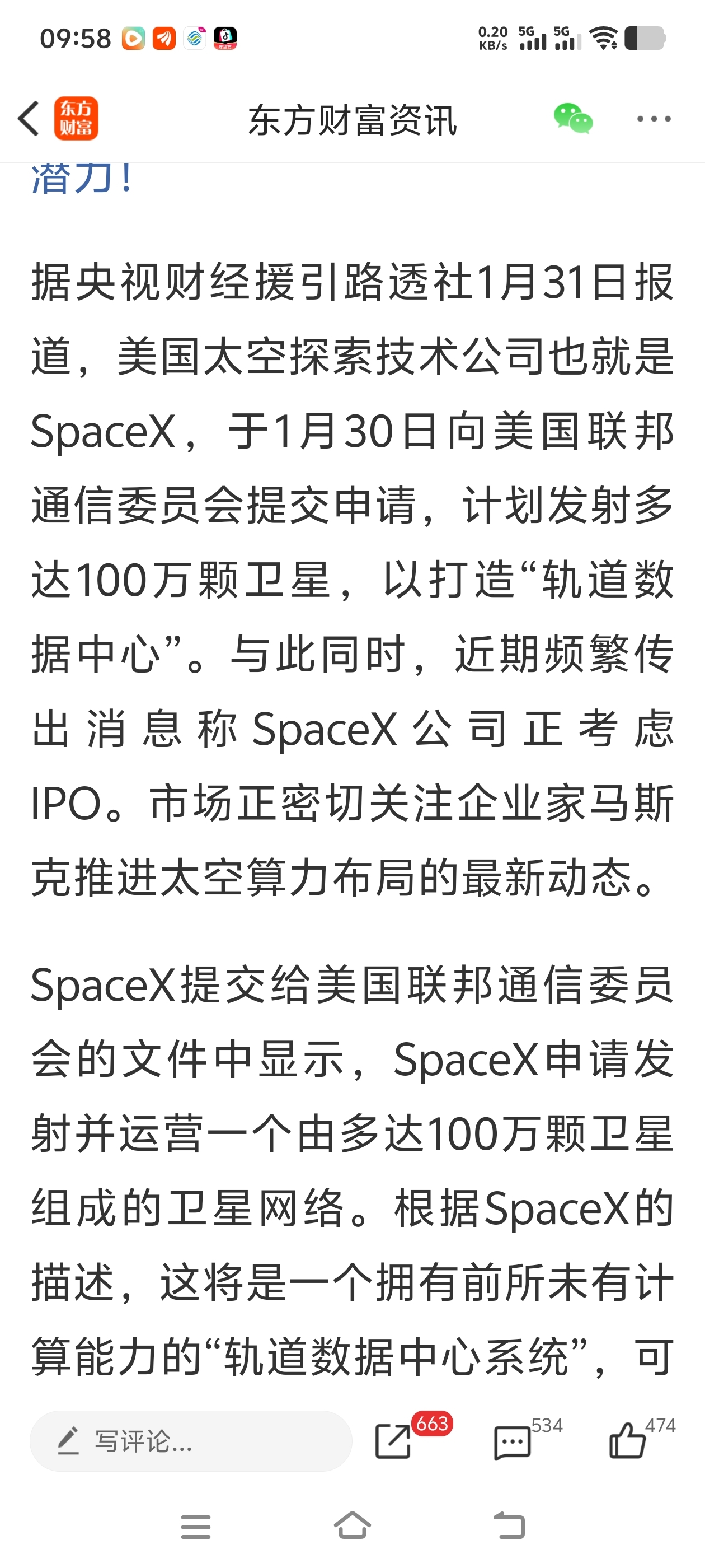 $ST惠伦(SZ300460)$ 看到这个消息了吗 惠伦有卫星概念,马克说要部署一百万颗卫星,我们是不是也得加大力度部署卫星,