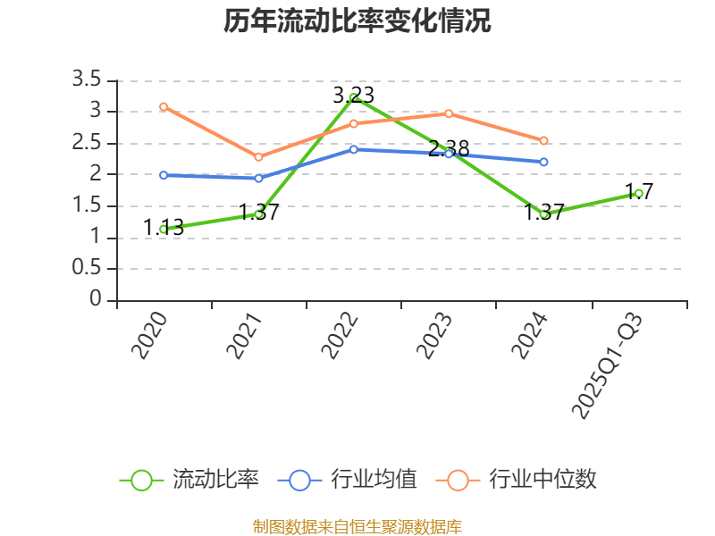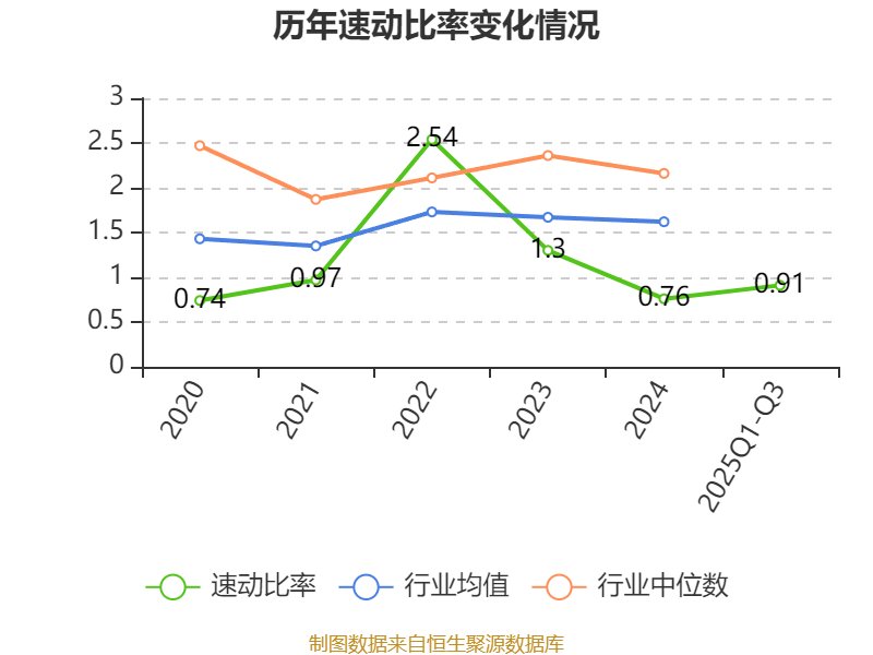 2025年前三季度,公司流动比率为1.7,速动比率为0.91。