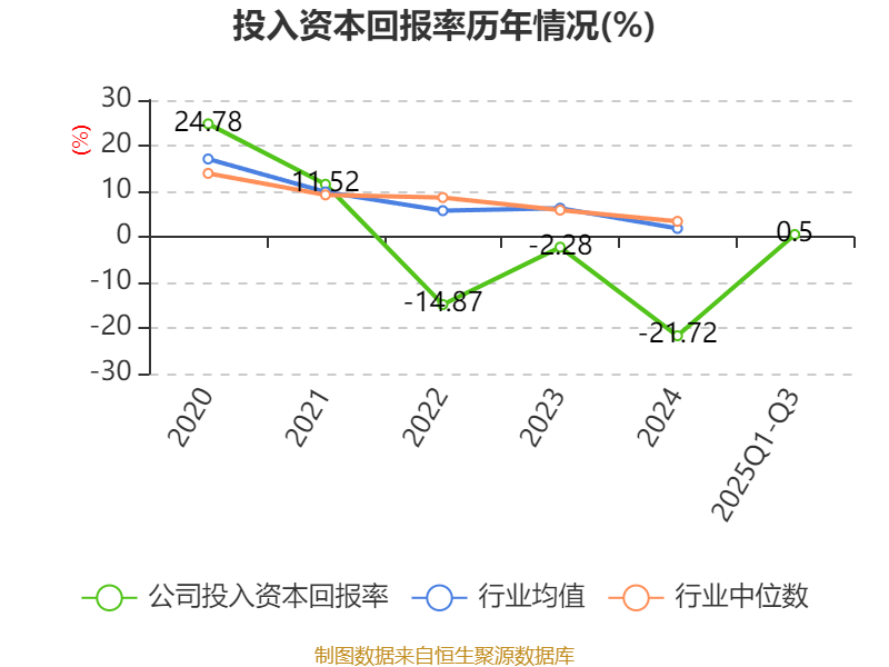 盈利能力方面, 2025年前三季度公司加权平均净资产收益率为0.9%,同比上升6.05个百分点。公司2025年前三季度投入资本回报率为0.5%,较上年同期上升4.89个百分点。