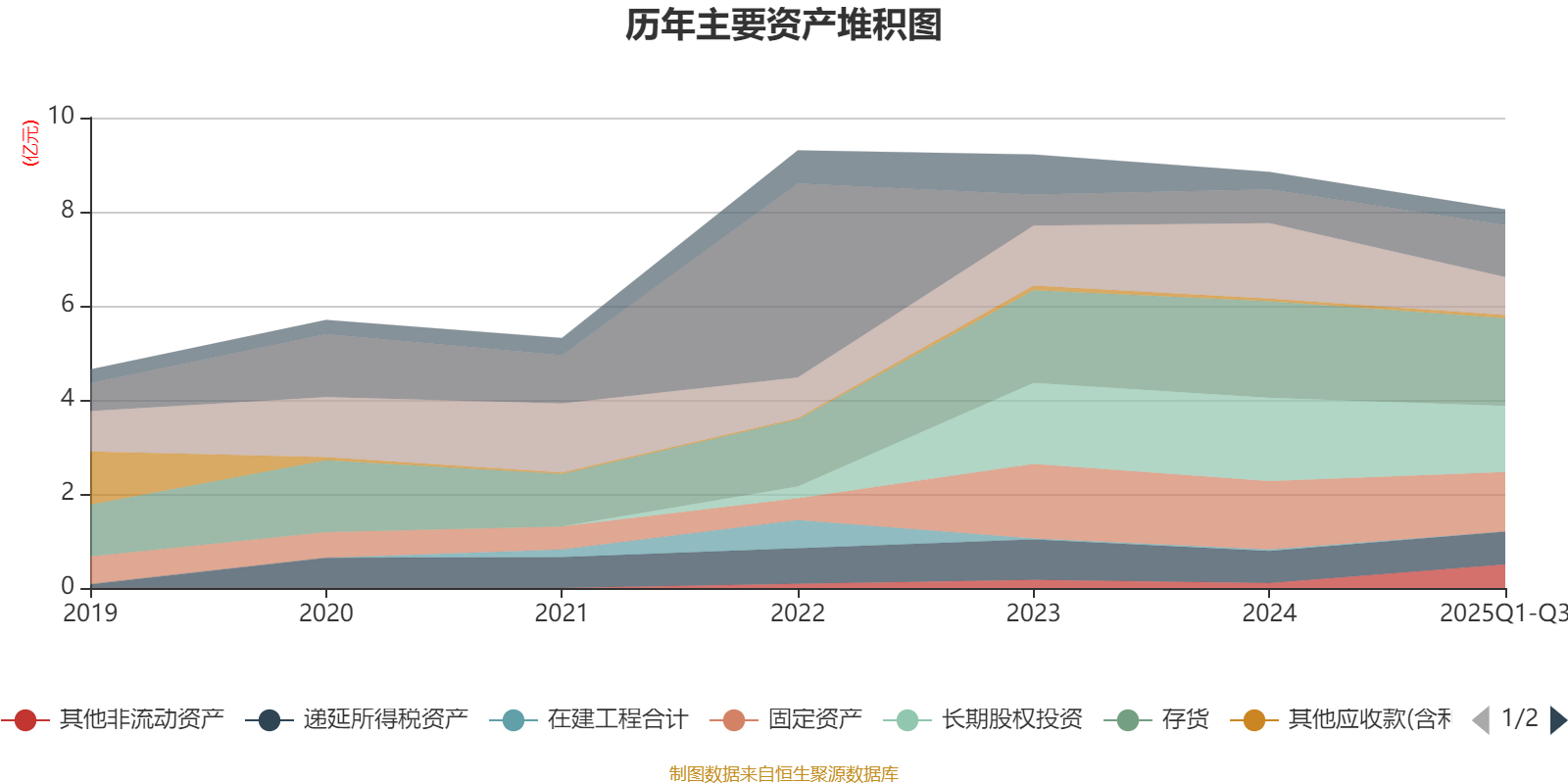 资产重大变化方面,截至2025年三季度末,公司应收票据及应收账款较上年末减少49.65%,占公司总资产比重下降8.09个百分点;货币资金较上年末增加52.94%,占公司总资产比重上升5.56个百分点;其他非流动资产较上年末增加385.13%,占公司总资产比重上升5.05个百分点;长期股权投资较上年末减少20.73%,占公司总资产比重下降2.58个百分点。