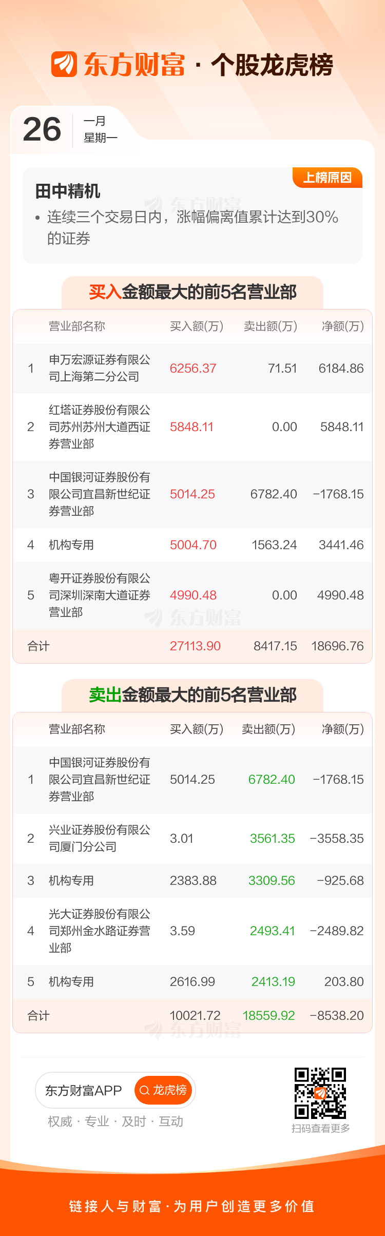 田中精机(300461)龙虎榜数据(01-26)