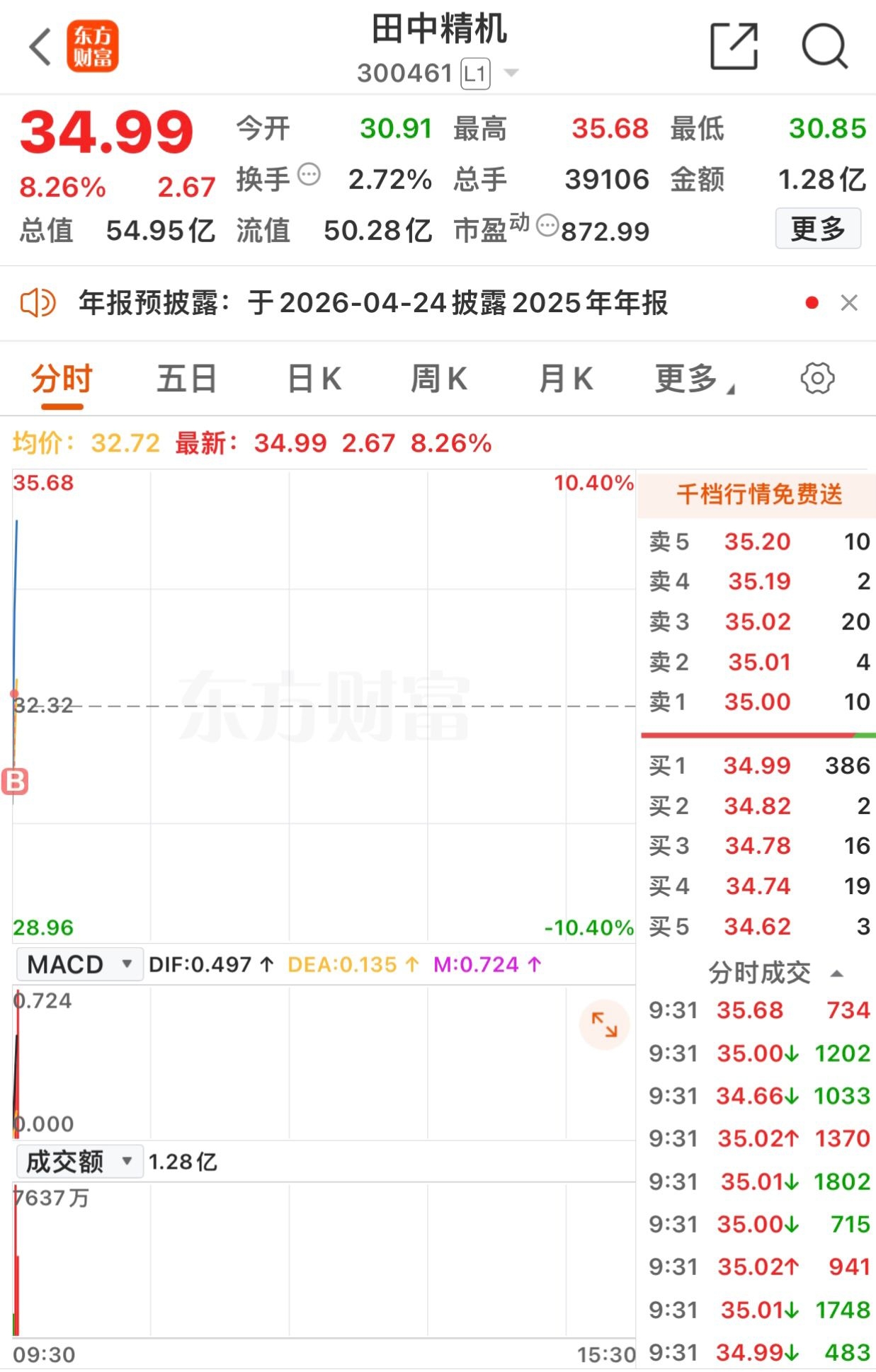 $田中精机(SZ300461)$