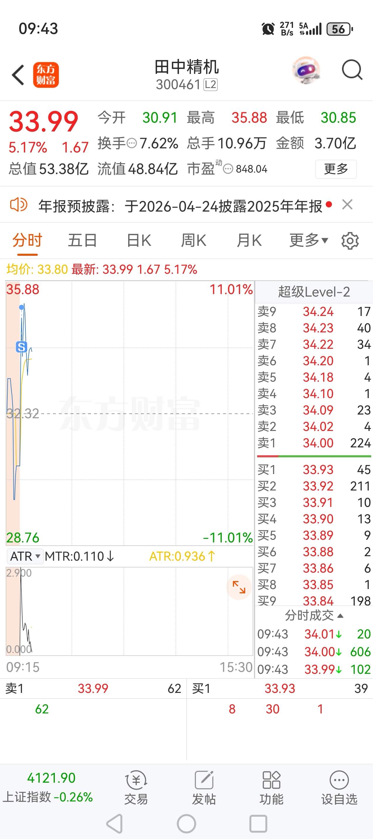 $田中精机(SZ300461)$ 感谢,卖飞了,祝留下发财