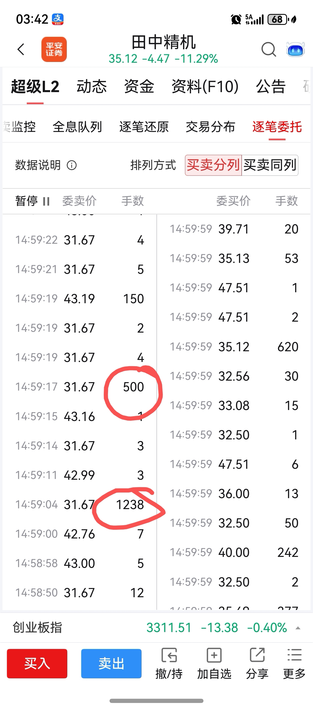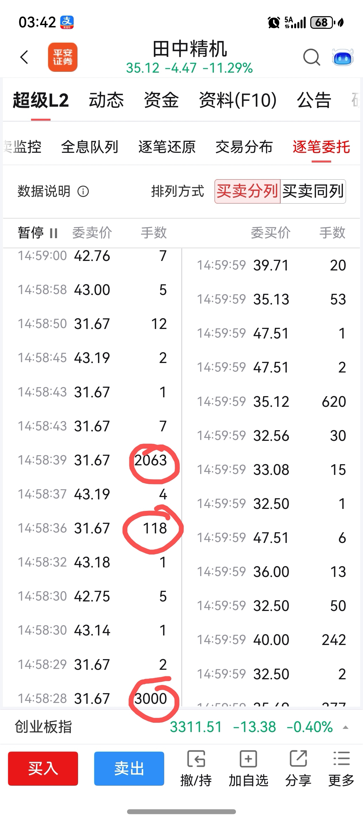 分5次卖的,6919手,这不是乌龙指。