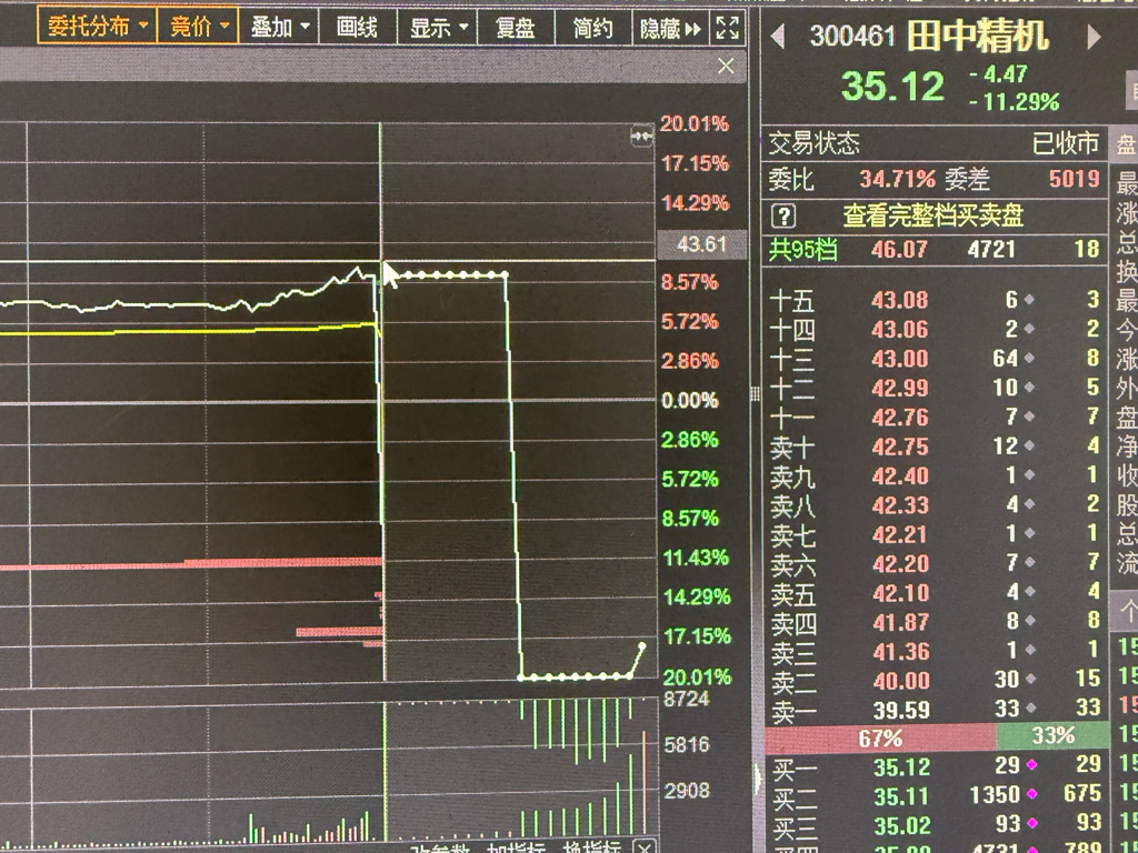 $田中精机(SZ300461)$ 为何尾盘竞价是跌停了的?