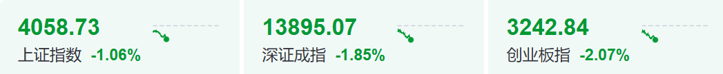 2月5日,A股主要指数全线低开:上证指数跌0.66%,深证成指跌0.96%,创业板指跌1.02%。随后市场震荡下行,截至发稿,三大指数跌幅均有所扩大,创业板指跌逾2%。