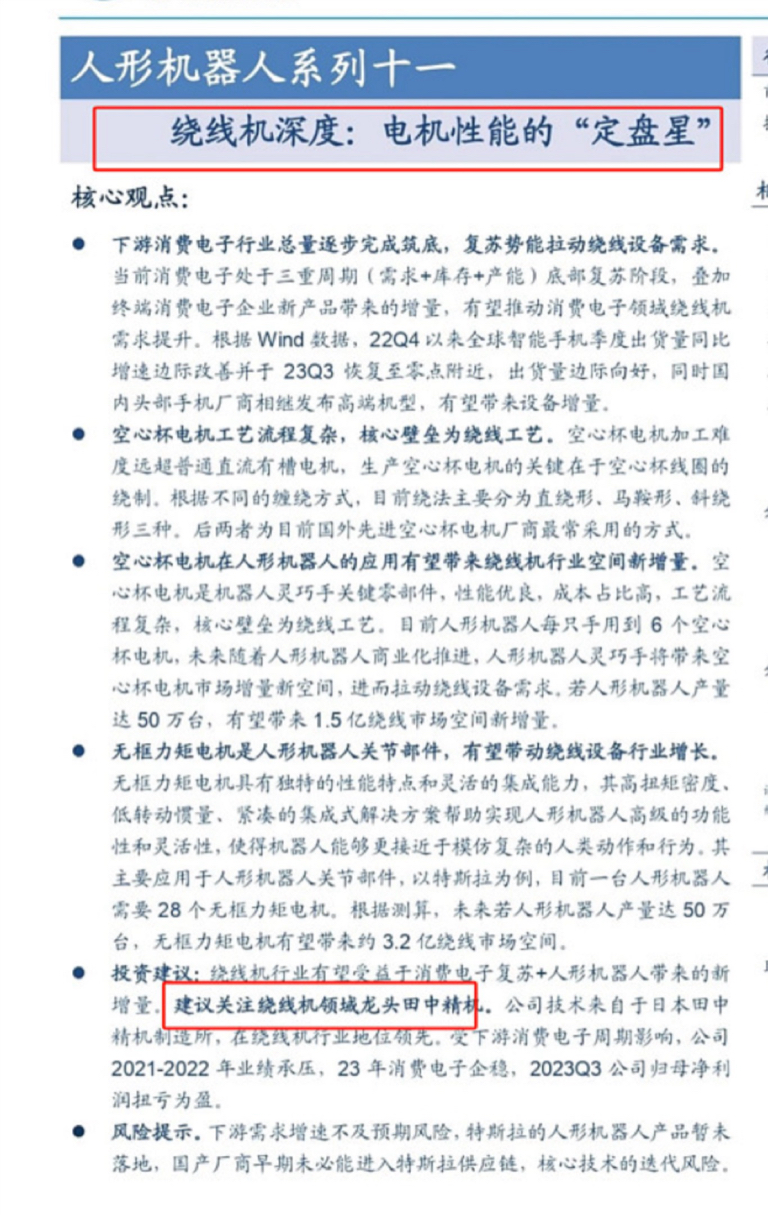 田中精机是机器人量产空心杯线组真正的龙头!