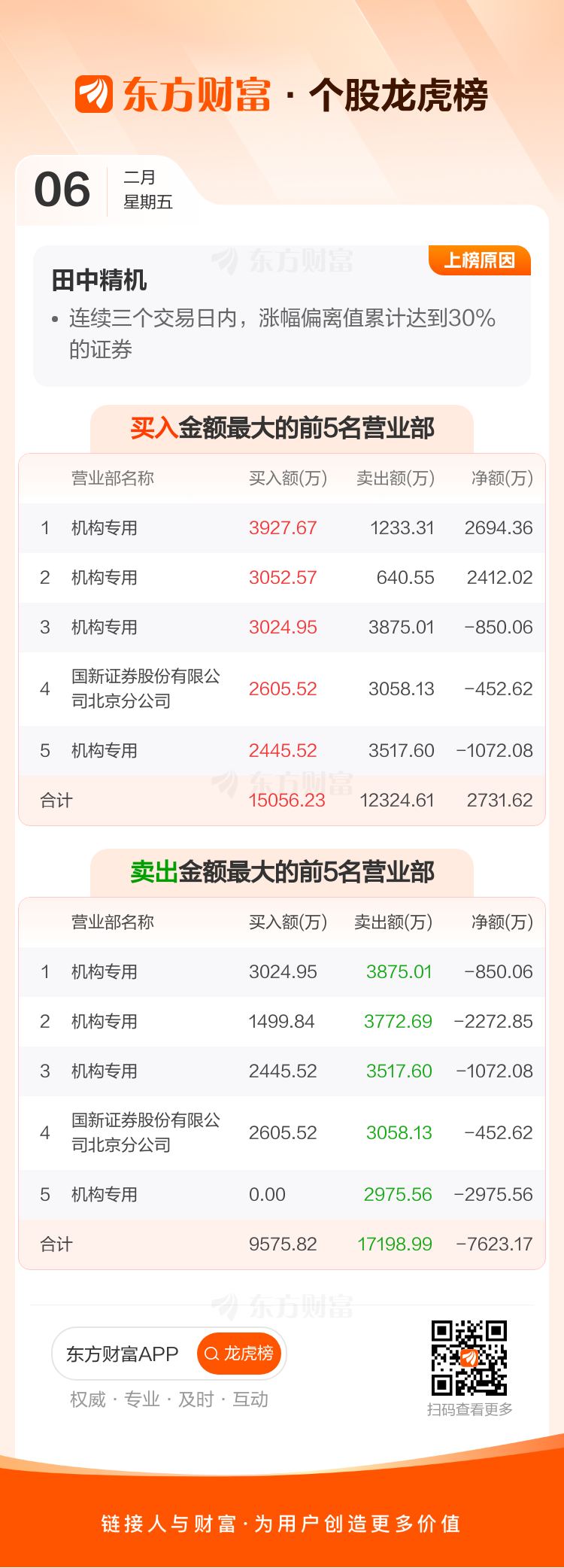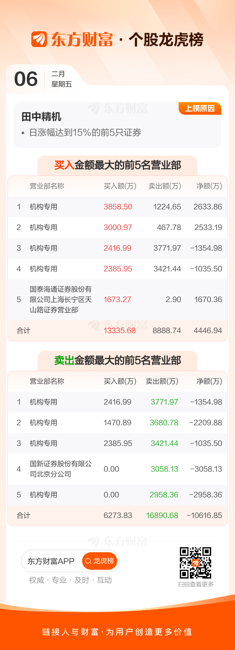 田中精机(300461)龙虎榜数据(02-06)