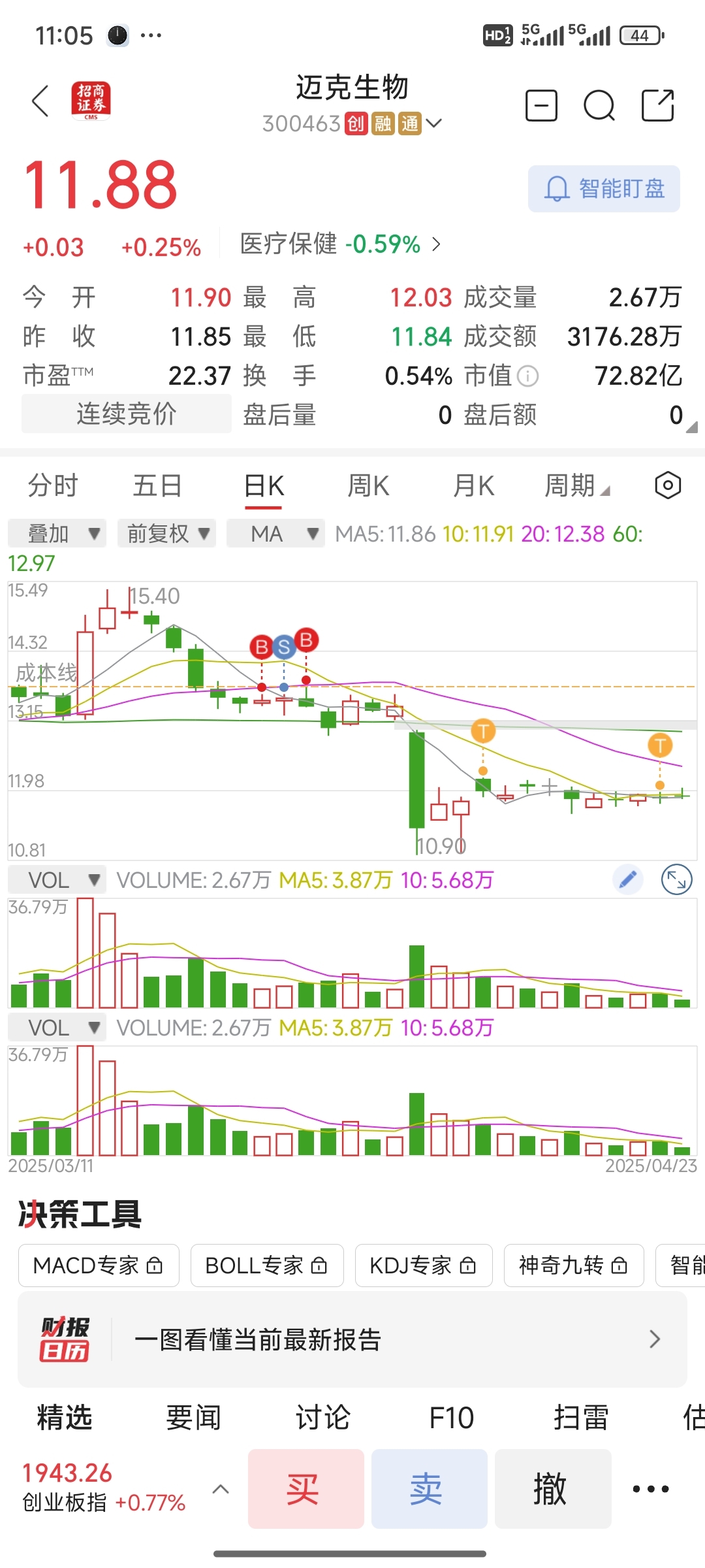 $迈克生物(SZ300463)$ 大盘十一连阳,我买的啥玩意