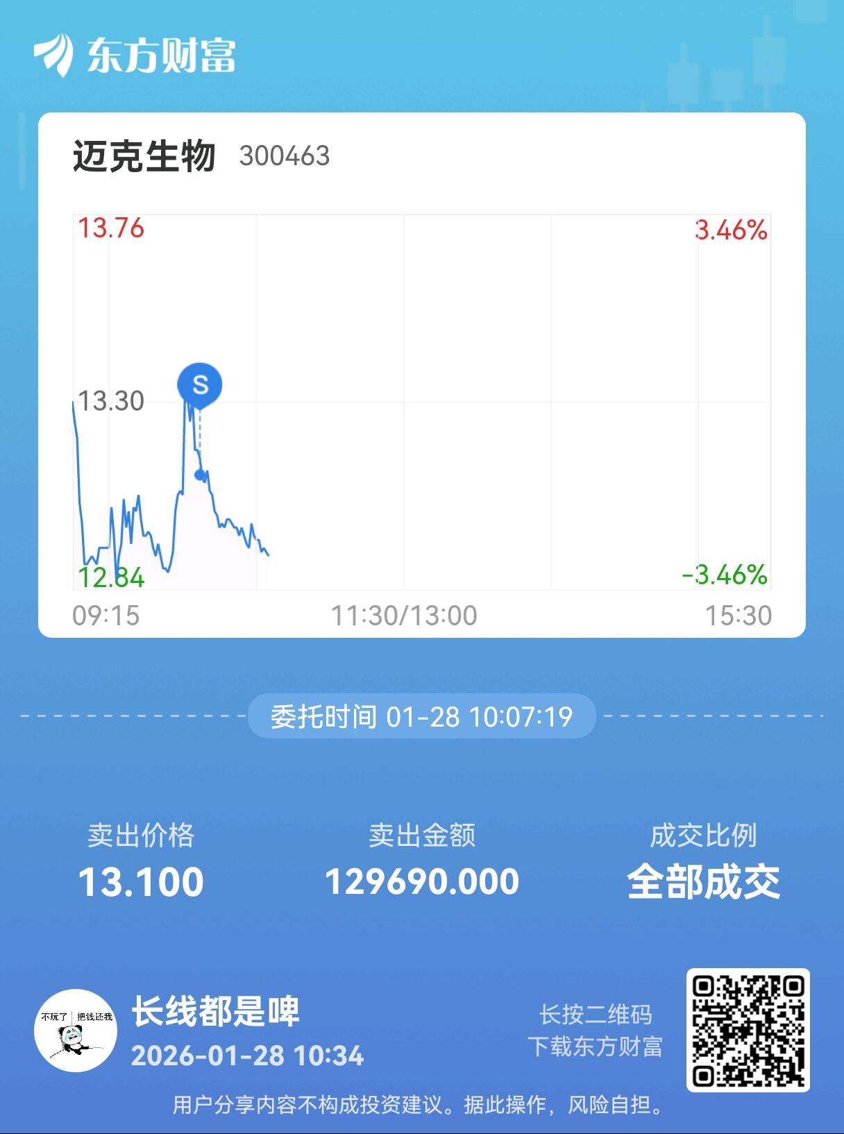 温馨提示: 1.根据《证券法》规定,禁止编造、传播虚假信息或者误导性信息,扰乱证券市场;2.用户在本社区发表的所有资料、言论等仅代表个人观点,与本网站立场无关,不对您构成任何投资建议。用户应基于自己的独立判断,自行决定证券投资并承担相应风险。《东方财富社区管理规定》