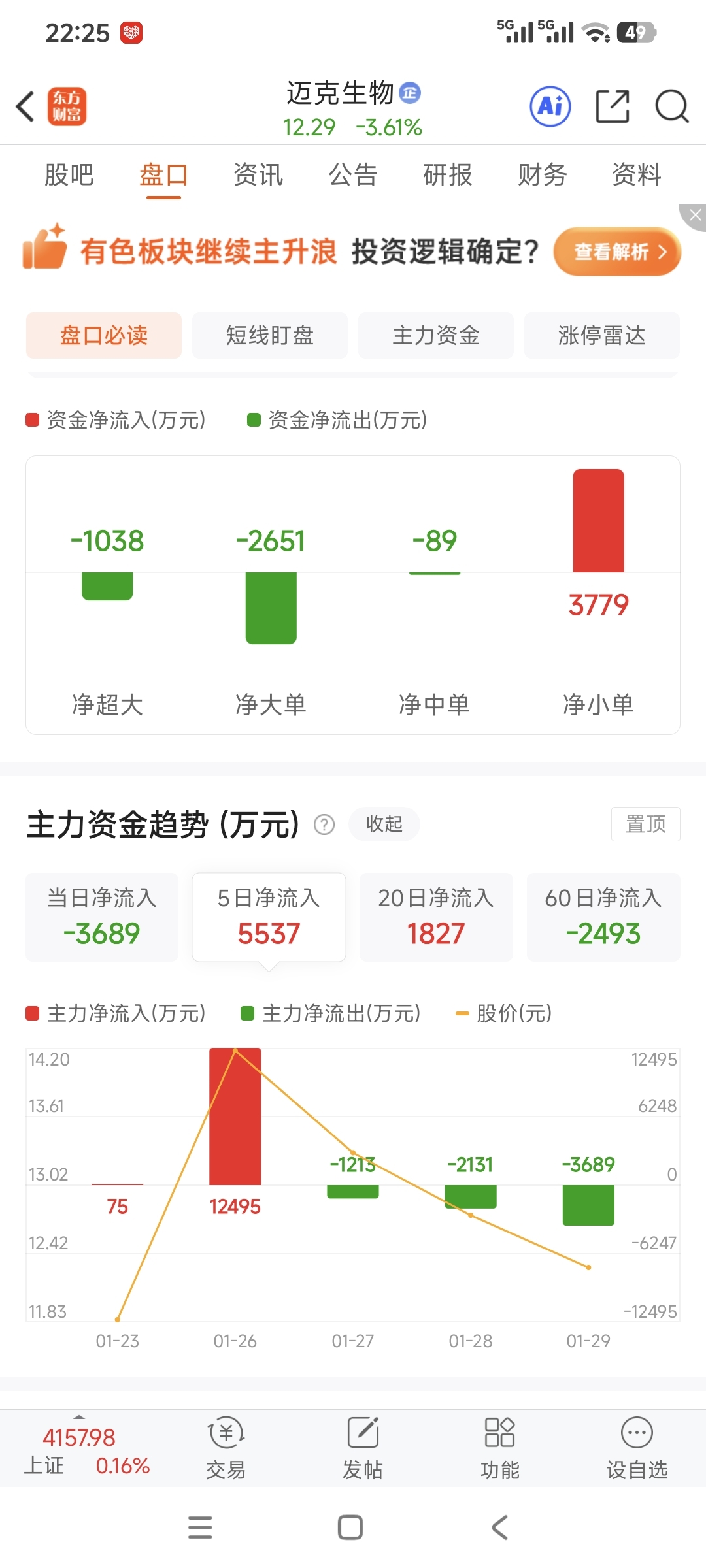 $迈克生物(SZ300463)$ 主力的成本摆在那里。相当于一个10%的跌停板了。感觉明天会有反弹的。