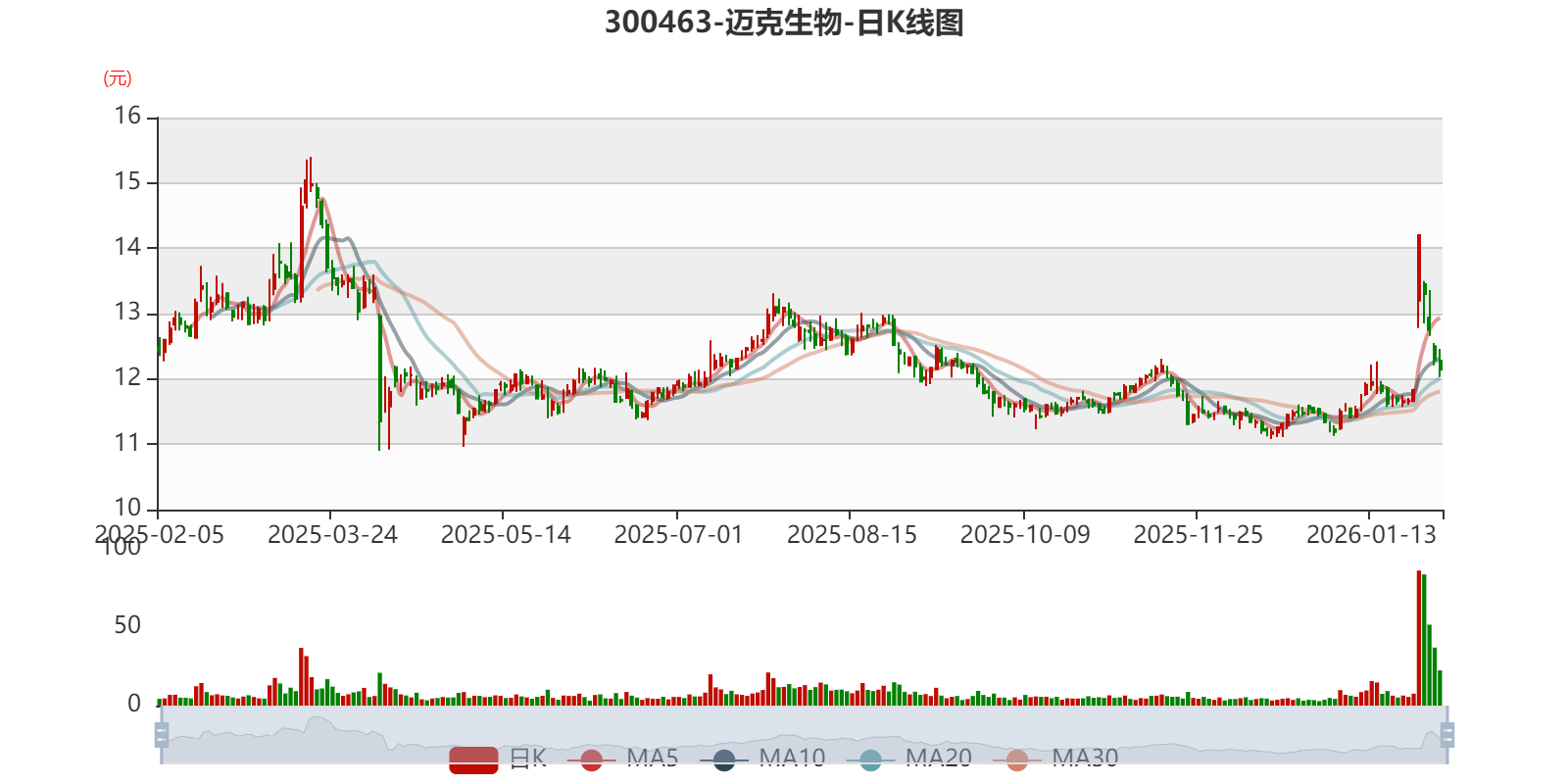 中证智能财讯迈克生物(300463)1月30日晚间披露2025年度业绩预告,预计2025年实现营业收入21亿元至23亿元;归母净利润亏损4000万元至5500万元,上年同期盈利1.27亿元;扣非净利润亏损500万元至1000万元,上年同期盈利1.38亿元。以最新收盘价计算,市净率(LF)约1.16倍,市销率(TTM)约3.34倍。