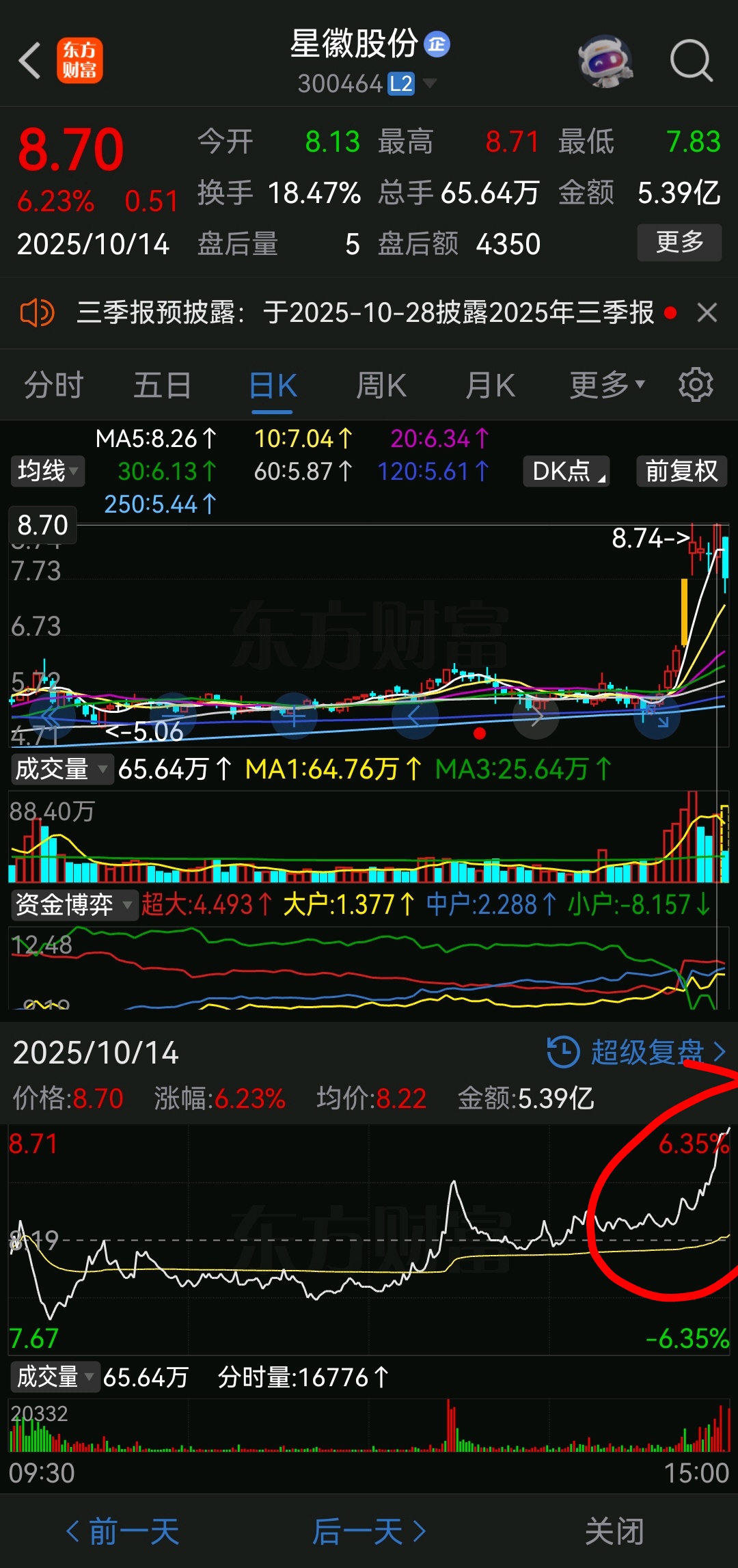 $星徽股份(SZ300464)$ 事实再次证明,主力要想拉升,一定要尽早走强,这样想卖的人也会拉升过程中早点卖,隔天也不会有太多抛压,但是尾盘偷袭拉升,第二天直接低开低走十几个点,就问你惨不惨,星微昨天尾盘的拉升现在看来既可笑又可悲,完全无厘头,要么就不要走强,要么就早早走强,主力有腾挪空间,可惜了那些追涨的散户。$金春股份(SZ300877)$ $利和兴(SZ301013)$ 北方长龙