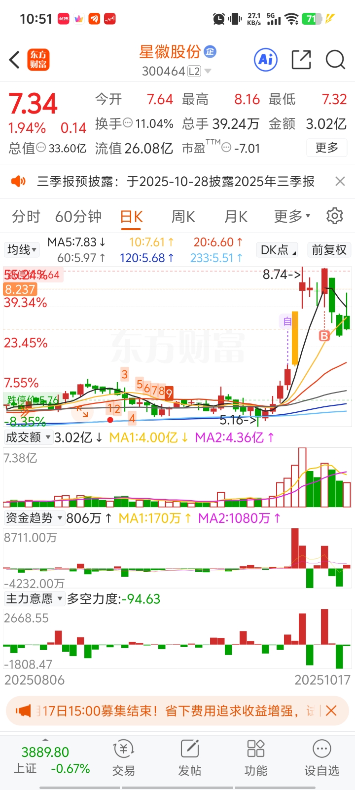 $星徽股份(SZ300464)$ 今天拉12个点我没动,后面调整调整还能突破我的成本
