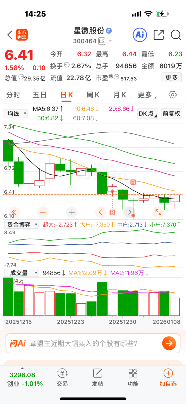 分两次买的,但主力总能精准找到我的成本线,然后摸几个没完,实在无语