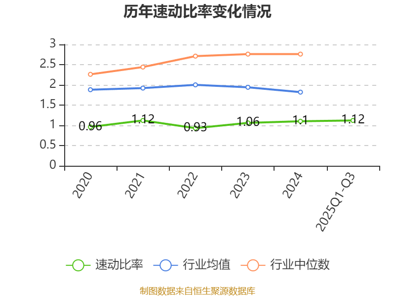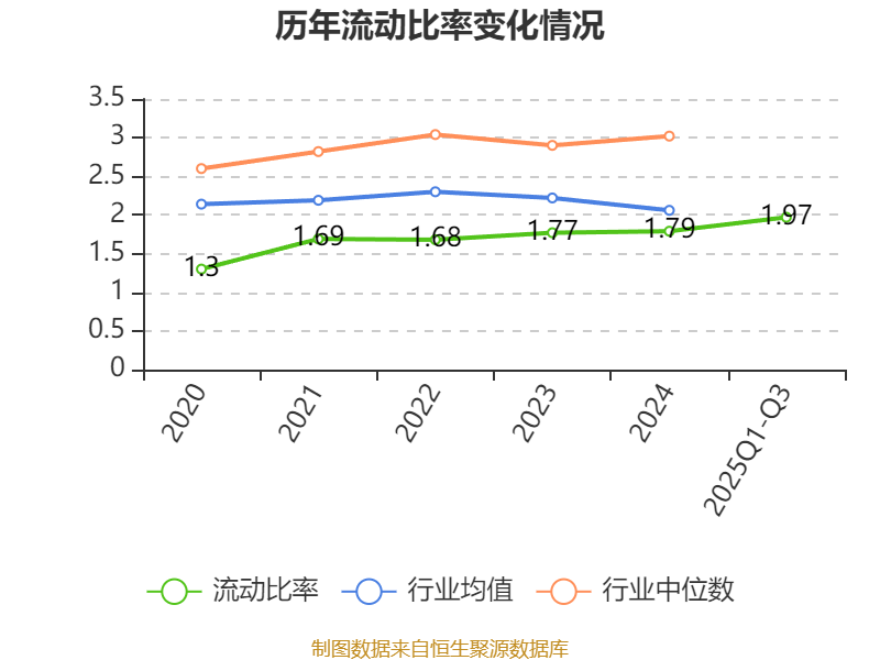 2025年前三季度,公司流动比率为1.97,速动比率为1.12。