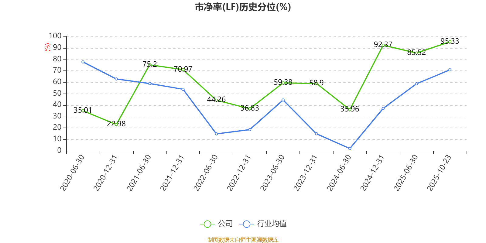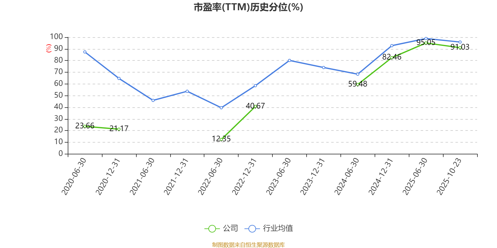 市盈率、市净率为负时,不显示当期分位数,会导致折线图中断。