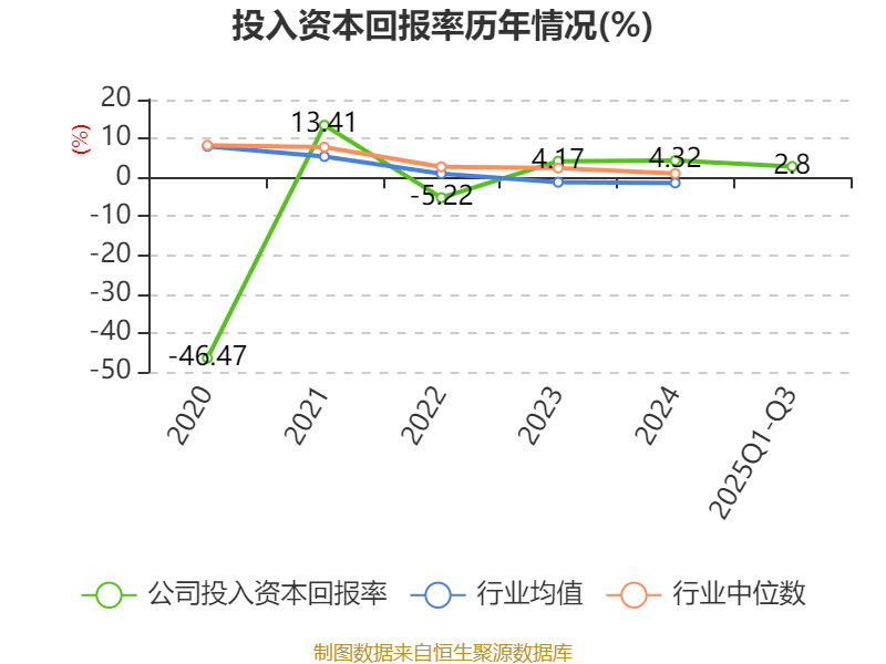 盈利能力方面, 2025年前三季度公司加权平均净资产收益率为3.23%,同比下降0.42个百分点。公司2025年前三季度投入资本回报率为2.8%,较上年同期下降0.46个百分点。