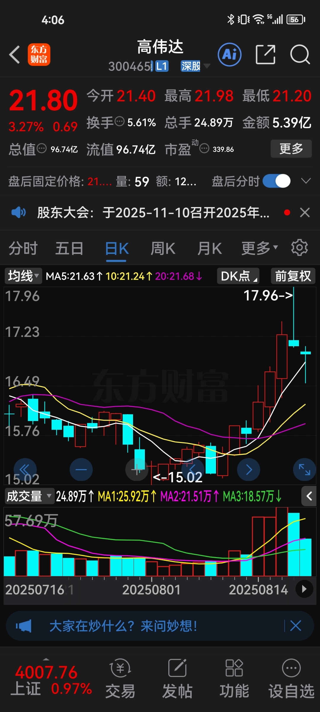 $高伟达(SZ300465)$ 达哥又要绘制图形啦!八月十九这个 顶天立地 堪称年度经典!