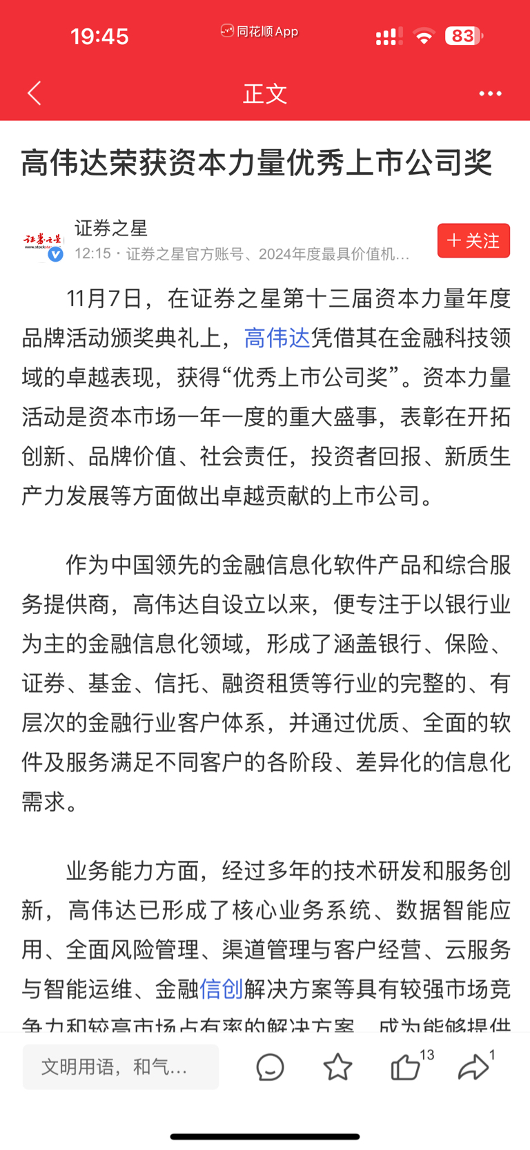 $高伟达(SZ300465)$ 不知道是否算利好?