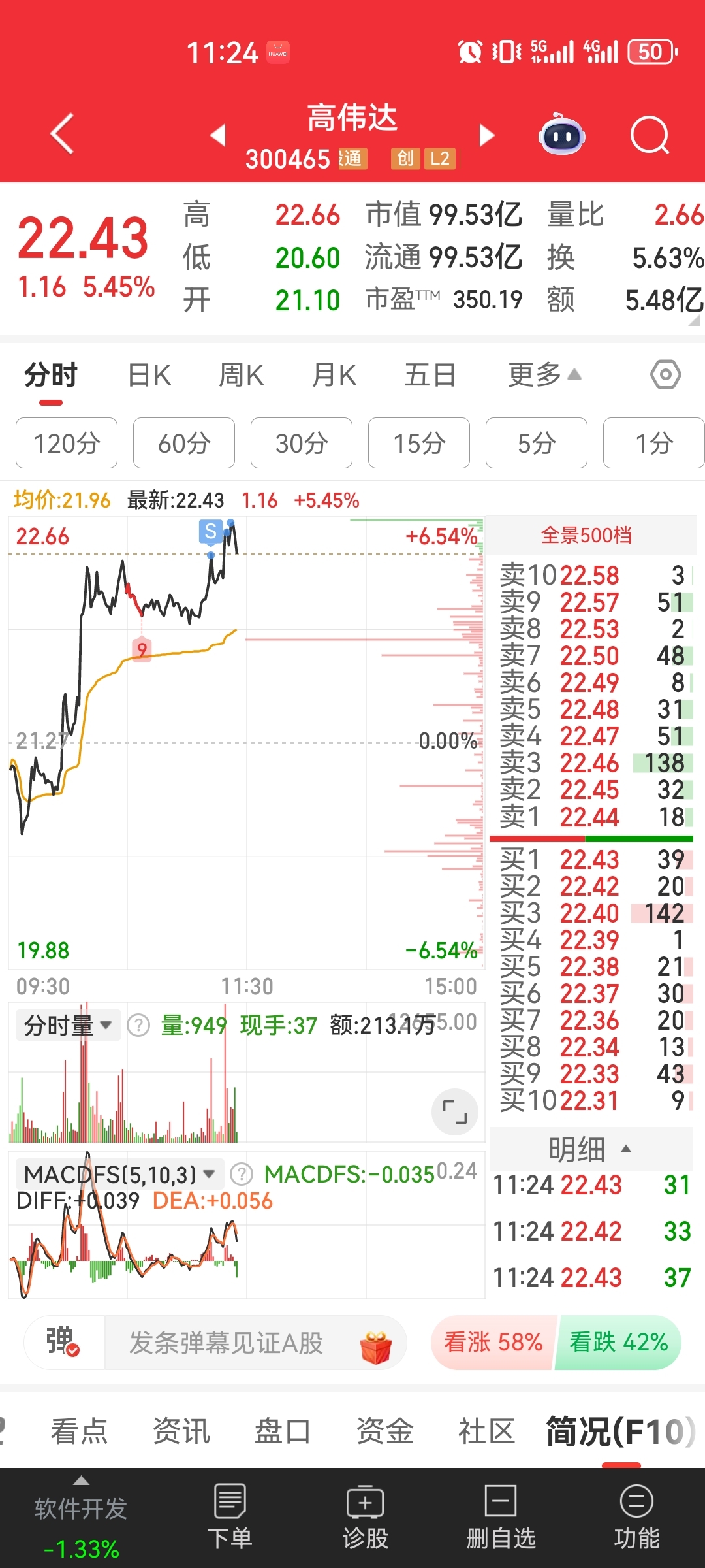 $高伟达(SZ300465)$ 已清仓,尾盘看情况是否接回