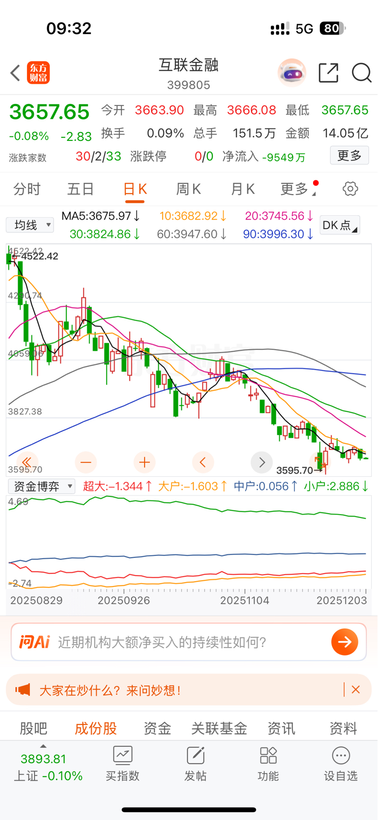 散了吧,互联金融不涨,高伟达永远起不来,你们看最近互联金融的65只票,近期最少有