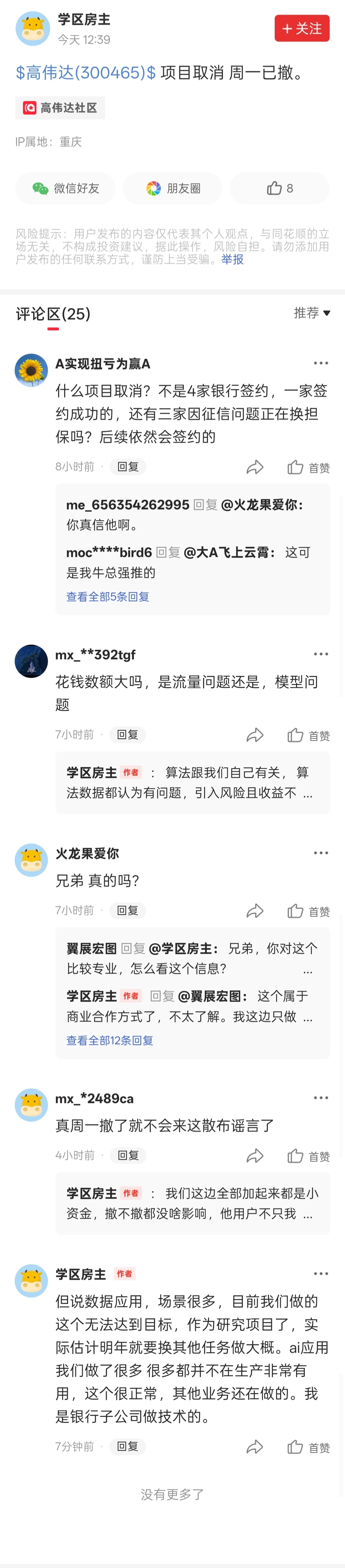 $高伟达(SZ300465)$ 说是合作方(客户)技术员工的观点,供参考