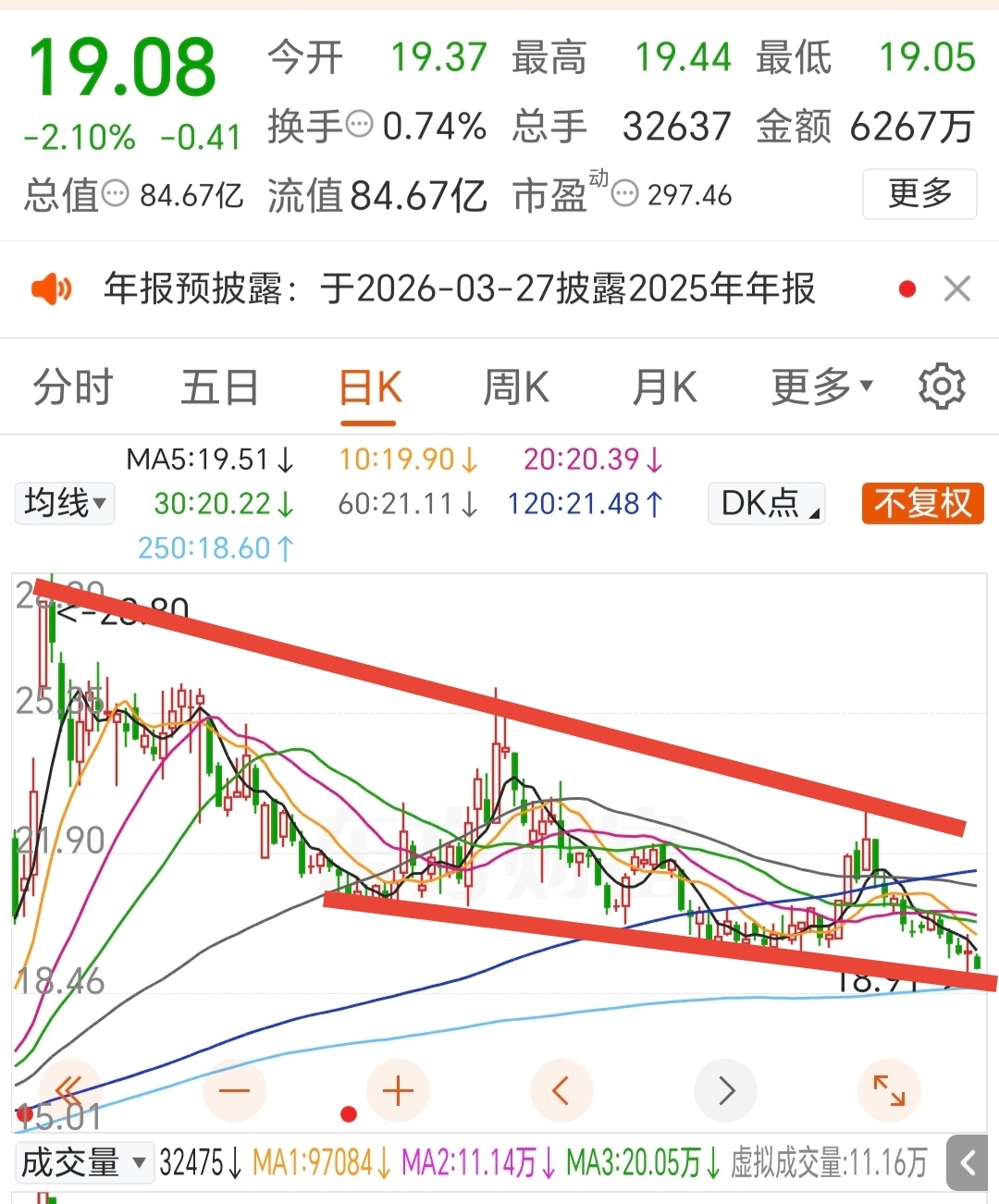 $高伟达(SZ300465)$ 高点和低点都在同步下降,短期看不到底,做好长期拿的准备