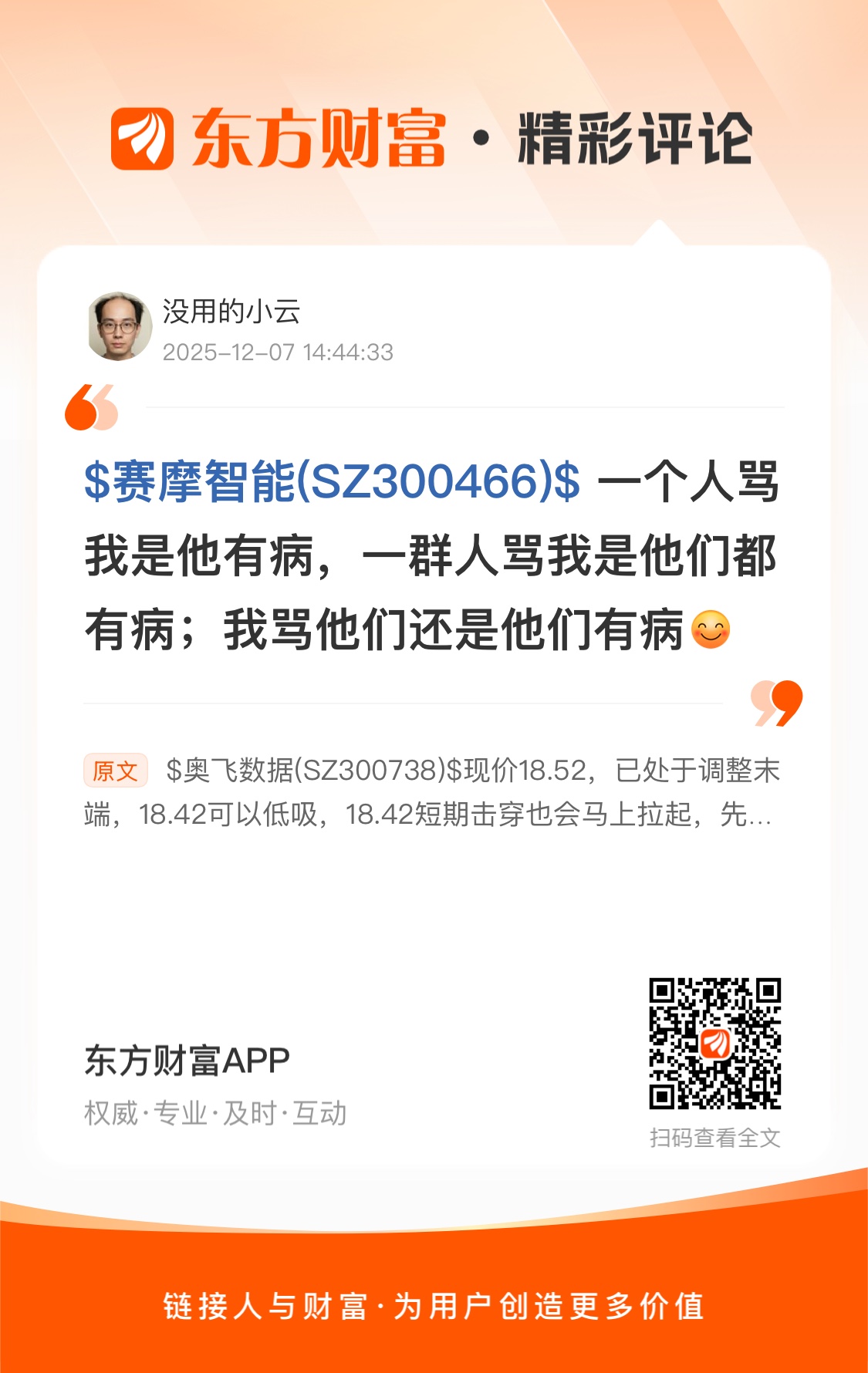 郑重声明:用户在财富号/股吧/博客等社区发表的所有信息(包括但不限于文字、视频、音频、数据及图表)仅代表个人观点,与本网站立场无关,不对您构成任何投资建议,据此操作风险自担。请勿相信代客理财、免费荐股和炒股培训等宣传内容,远离非法证券活动。请勿添加发言用户的手机号码、公众号、微博、微信及QQ等信息,谨防上当受骗!