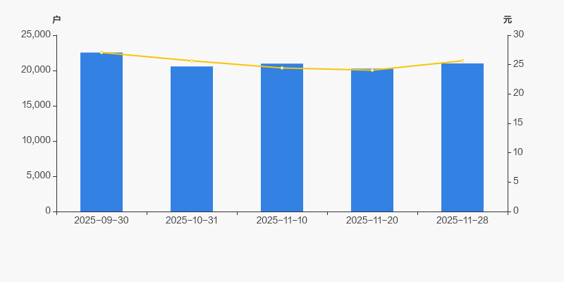 2025年9月30日至今,公司股东户数有所下降,区间跌幅为6.83%。2025年9月30日至2025年11月28日区间股价下降5.21%。